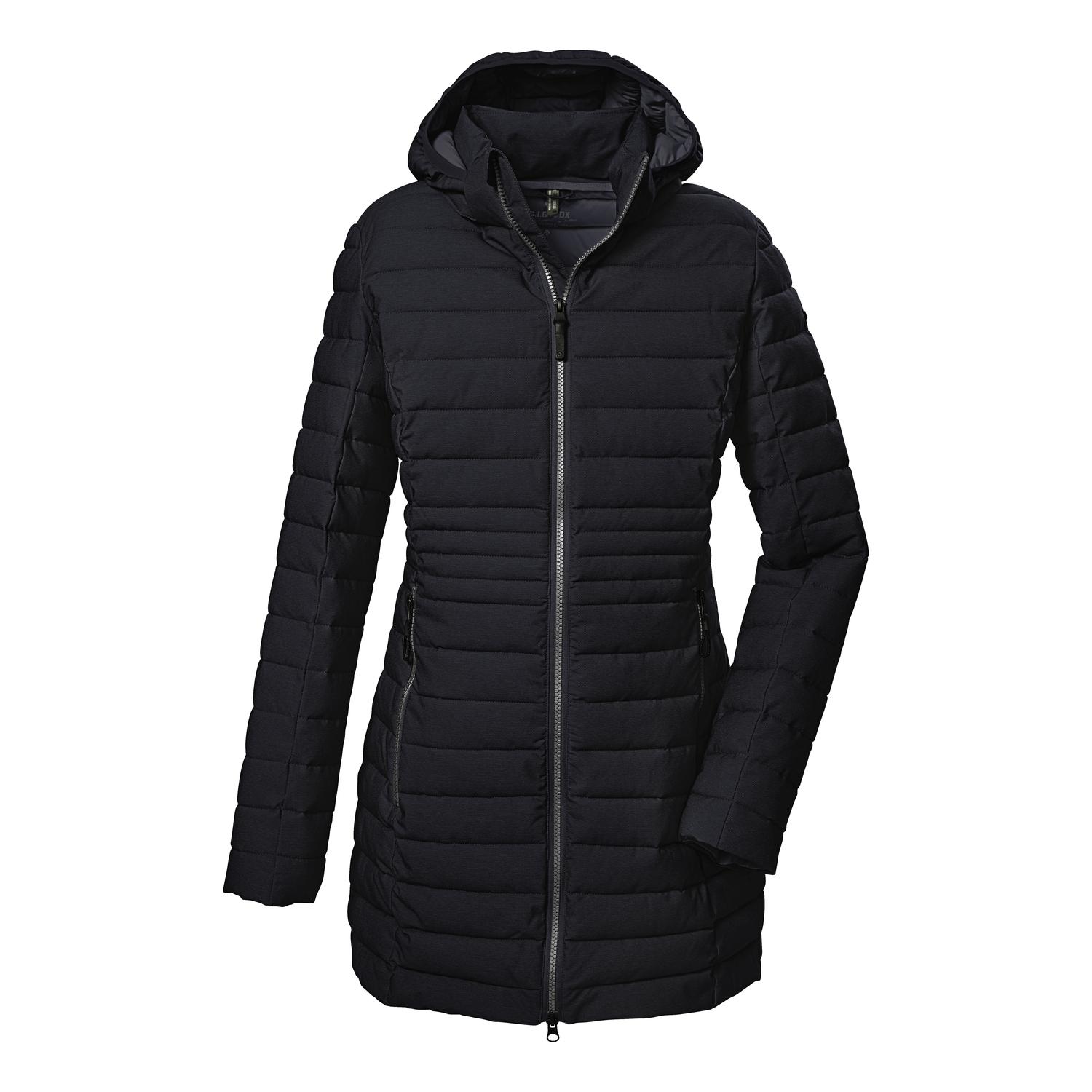 Damen Funktionsparka in Daunenoptik mit abzippbarer Kapuzewasserabweisend, (8.000 mm), atmungsaktiv, winddichtgute Passform und figurschmeichelnde Steppung2-Wege-Reißverschluss mit Kinnschutz, zwei ZippertaschenPFAs-freie Imprägnierung, recyceltes MaterialName: GW 14 WMN QLTD PRK_BacaryaSaison: Herbst/WinterDer Damen Funktionsparka in Daunenoptik von G.I.G.A. DX besticht durch seinen schmalen Schnitt und die figurschmeichelnde Steppung. Der Parka ist wasserabweisend und winddicht mit einer 8.000 mm Wassersäule und gleichzeitig atmungsaktiv. Die abzippbare Kapuze und der hohe Stehkragen schützen zusätzlich vor Wind und Regen. Die beiden Seitentaschen sind mit Zippern verschließbar. Der 2-Wege-Reißverschluss lässt sich von oben und unten öffnen und sorgt so für Bewegungsfreiheit. Außerdem ist er mit einem praktischen Kinnschutz versehen. killtec liegt es besonders am Herzen, die Kollektionen nachhaltiger und zukunftsfähiger zu machen. So setzt killtec verstärkt auf verantwortungsbewusstere Herstellungsverfahren. Dieser Steppparka wurde daher mit fluorfreien Mitteln imprägniert und teilweise aus recyceltem Material hergestellt.
