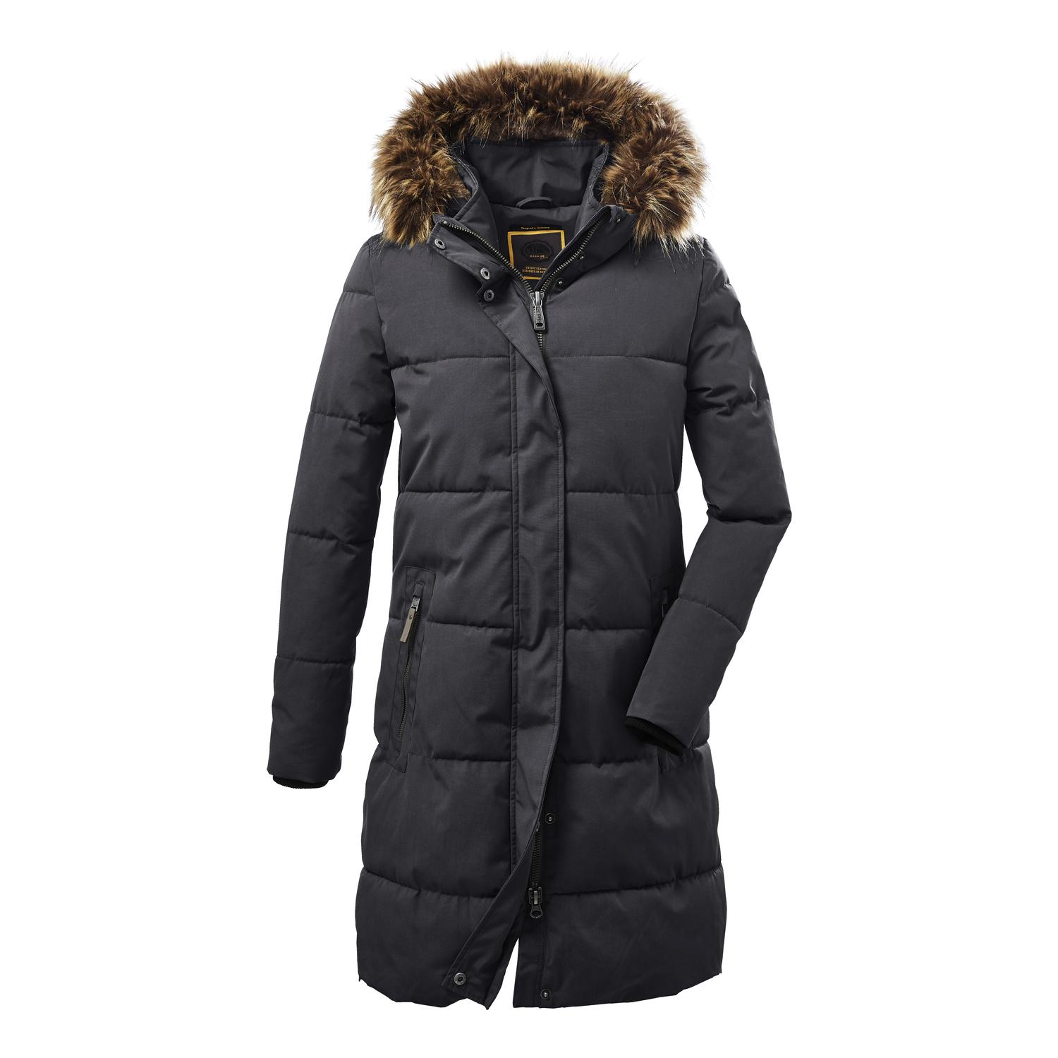 Funktionsparka in Daunenoptik mit Kapuzewasserabweisend, (8.000 mm), atmungsaktiv, winddicht2-Wege-Reißverschluss, seitliche Zipperhochwertiges Kunstfell, abnehmbarPFAs-freie Imprägnierung, gut für dich und die UmweltName: GW 18 WMN QLTD PRKSaison: Herbst/WinterMit dem Steppmantel in zeitlosem Citystyle von G.I.G.A. DX kann der Winter kommen. Der atmungsaktive und wasserabweisende Oberstoff mit einer 8.000 mm Wassersäule sorgt für Wetterschutz und optimalen Tragekomfort. Das hochwertige Kunstfell an der weich gefütterten Kapuze ist abnehmbar. Der verdeckte 2-Wege-Frontreißverschluss und seitliche Reißverschlüsse sorgen für Bewegungsfreiheit. Die beiden Eingrifftaschen lassen sich mit Zippern verschließen. Zusätzlich gibt es eine Handytasche an der Innenseite. killtec liegt es besonders am Herzen, die Kollektionen nachhaltiger und zukunftsfähiger zu machen. So setzt killtec verstärkt auf verantwortungsbewusstere Herstellungsverfahren. Dieser Parka wurde daher mit fluorfreien Mitteln imprägniert.