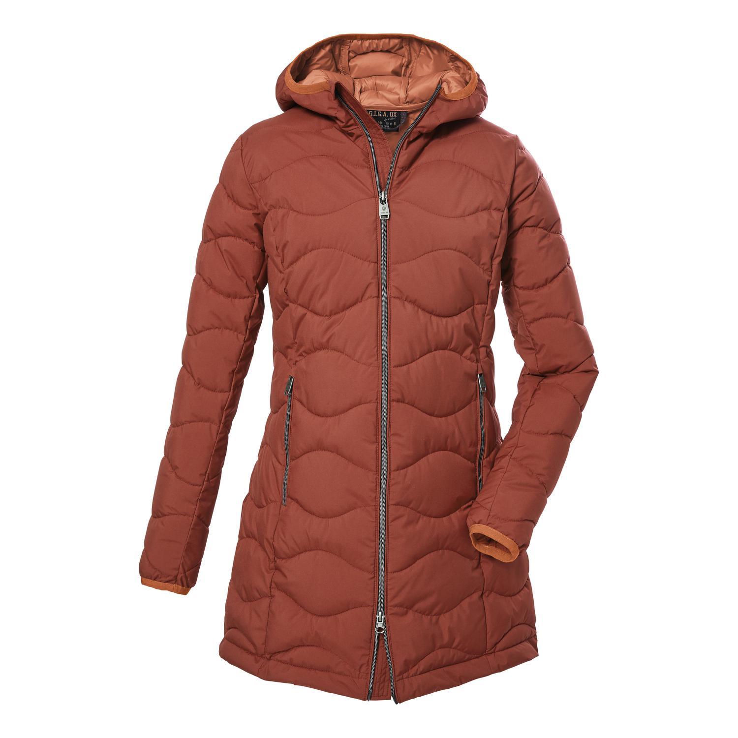 Dünn gefütterter Damen Steppparka mit Kapuzewasserabweisend, (8.000 mm), atmungsaktiv, winddichtSaum und Ärmelbündchen elastisch2-Wege-Reißverschluss mit Kinnschutz, Taschen mit Zippernrecycelte Materialien, PFAs-freie ImprägnierungName: GW 20 WMN QLTD PRKSaison: Herbst/WinterDer dünn gefütterte Damen Steppparka von G.I.G.A DX besticht durch seine Kombination aus Funktion und lässigem Casual Style. Der wasserabweisende und atmungsaktive Oberstoff mit einer 8.000 mm Wassersäule verspricht Wetterschutz und optimalen Tragekomfort. Die Ärmelbündchen und der Saum sind elastisch und daher besonders bequem. Der 2-Wege-Reißverschluss lässt sich von oben und unten öffnen und sorgt so für Bewegungsfreiheit. Außerdem ist er mit einem praktischen Kinnschutz ausgestattet. Die zwei Eingrifftaschen sind mit Zippern verschließbar, sodass nichts verloren geht. killtec liegt es besonders am Herzen, die Kollektionen nachhaltiger und zukunftsfähiger zu machen. So setzt killtec verstärkt auf verantwortungsbewusstere Herstellungsverfahren. Diese Jacke wurde daher teilweise aus recycelten Materialen hergestellt und mit fluorfreien Mitteln imprägniert.