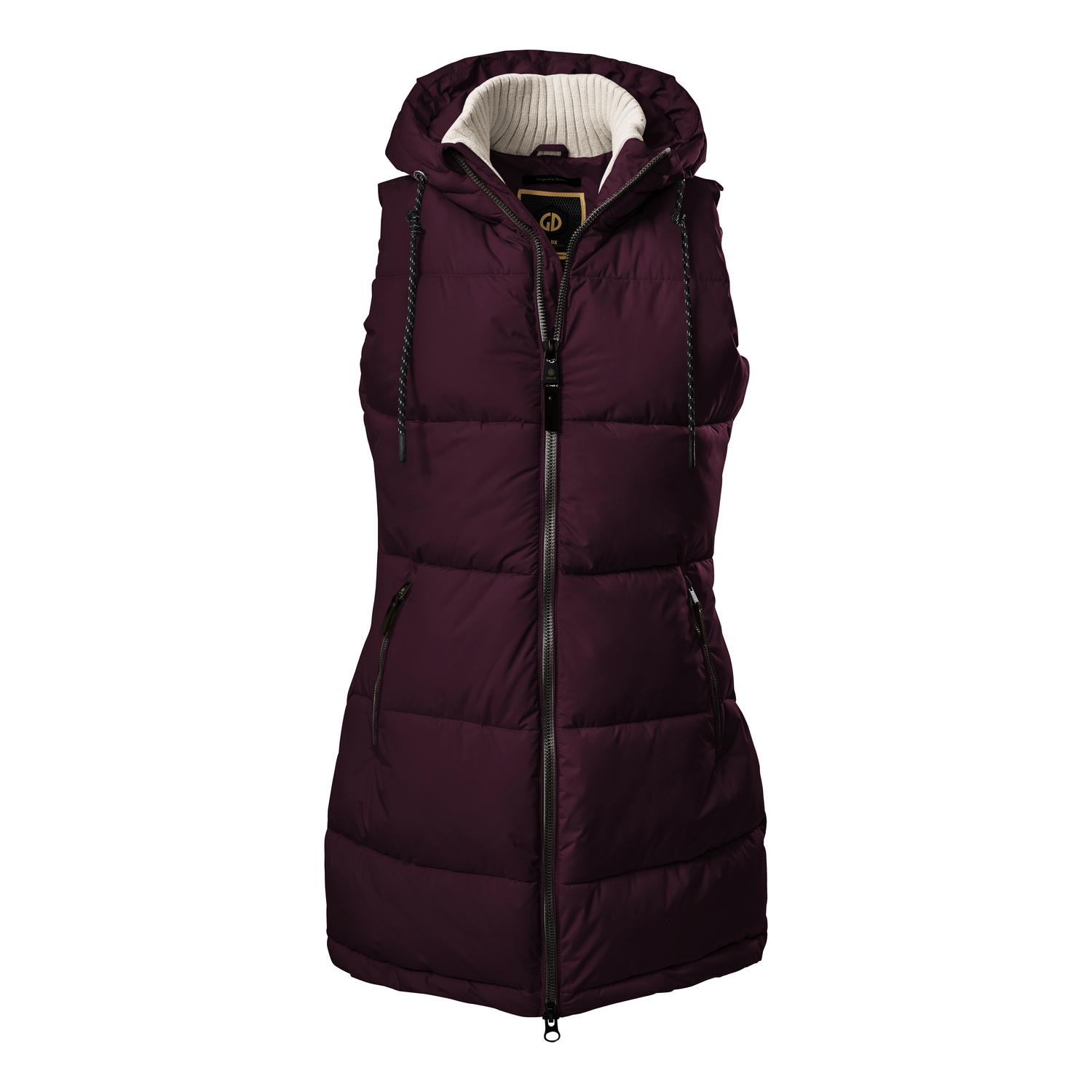 Damen Funktionsweste in Daunenoptik mit Kapuzewasserabweisend, (8.000 mm) und winddichtlanger Schnitt, Saum regulierbar, praktische Taschen2-Wege-Reißvschluss mit KinnschutzPFAs-freie Imprägnierung, recyceltes MaterialName: GW 30 WMN QLTD VSTSaison: Herbst/WinterMit der langen Funktionsweste in Daunenoptik von G.I.G.A. DX liegt man voll im Trend. Die Steppweste ist wasserabweisend, winddicht und gleichzeitig atmungsaktiv. Die Kapuze und der bequeme Strickkragen schützen zusätzlich vor Kälte und Wind. Die Weite vom Saum kann anhand eines Kordelzuges reguliert werden. Zwei Reißverschlusstaschen und eine Innentasche bieten Stauraum für Handy, Schlüssel und Co. Der 2-Wege-Reißverschluss ist mit einem praktischen Kinnschutz versehen, der ein Einklemmen der Haut verhindert. killtec liegt es besonders am Herzen, die Kollektionen nachhaltiger und zukunftsfähiger zu machen. So setzt killtec verstärkt auf verantwortungsbewusstere Herstellungsverfahren. Diese Weste wurde daher mit fluorfreien Mitteln imprägniert und teilweise aus recyceltem Material hergestellt.