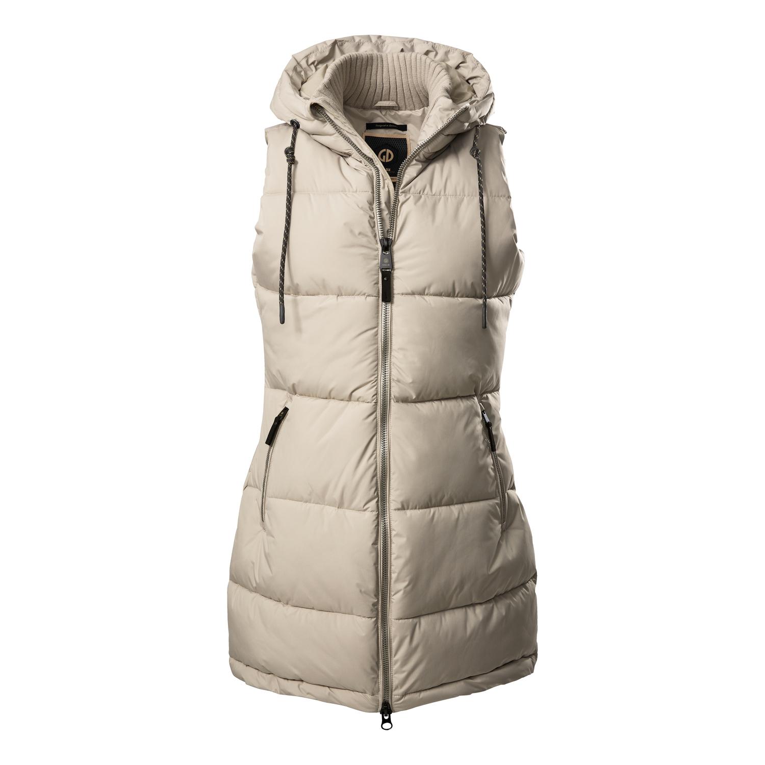 Damen Funktionsweste in Daunenoptik mit Kapuzewasserabweisend, (8.000 mm) und winddichtlanger Schnitt, Saum regulierbar, praktische Taschen2-Wege-Reißvschluss mit KinnschutzPFAs-freie Imprägnierung, recyceltes MaterialName: GW 30 WMN QLTD VSTSaison: Herbst/WinterMit der langen Funktionsweste in Daunenoptik von G.I.G.A. DX liegt man voll im Trend. Die Steppweste ist wasserabweisend, winddicht und gleichzeitig atmungsaktiv. Die Kapuze und der bequeme Strickkragen schützen zusätzlich vor Kälte und Wind. Die Weite vom Saum kann anhand eines Kordelzuges reguliert werden. Zwei Reißverschlusstaschen und eine Innentasche bieten Stauraum für Handy, Schlüssel und Co. Der 2-Wege-Reißverschluss ist mit einem praktischen Kinnschutz versehen, der ein Einklemmen der Haut verhindert. killtec liegt es besonders am Herzen, die Kollektionen nachhaltiger und zukunftsfähiger zu machen. So setzt killtec verstärkt auf verantwortungsbewusstere Herstellungsverfahren. Diese Weste wurde daher mit fluorfreien Mitteln imprägniert und teilweise aus recyceltem Material hergestellt.