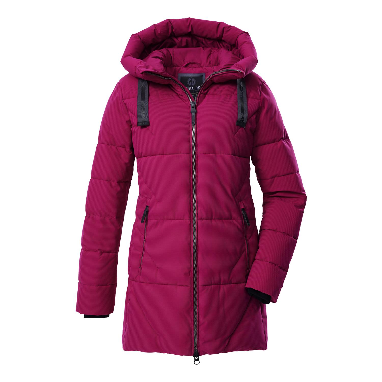 Damen Funktionsparka in Daunenoptik mit Kapuze wasserabweisend, (10.000 mm), atmungsaktiv, winddicht 2-Wege-Zipper und seitliche Reißverschlüsse Ärmelabschlüsse mit bequemen Strickbündchen PFAs-freie Imprägnierung, recyceltes Material Name: GW 30 WMN QLTD PRK Saison: Herbst/Winter Der dick gefütterte Steppparka mit großer Kapuze von G.I.G.A DX zeichnet sich durch seine Kombination aus Funktion und lässigem Casual Style aus. Der Parka ist wasserabweisend und winddicht mit einer 10.000 mm Wassersäule. Gleichzeitig ist er atmungsaktiv mit einer Wasserdampfdurchlässigkeit von 3.000 g/m²/24 h. Die Strickbündchen an den Ärmelabschlüssen halten warm und sind besonders bequem. Der 2-Wege-Zipper und seitliche Reißverschlüsse versprechen viel Bewegungsfreiheit. Zwei große Zippertaschen und eine Innentasche bieten genügend Stauraum für wichtige Dinge. killtec liegt es besonders am Herzen, die Kollektionen nachhaltiger und zukunftsfähiger zu machen. So setzt killtec verstärkt auf verantwortungsbewusstere Herstellungsverfahren. Dieser Parka wurde daher PFAs-frei imprägniert und teilweise aus recyceltem Material hergestellt.