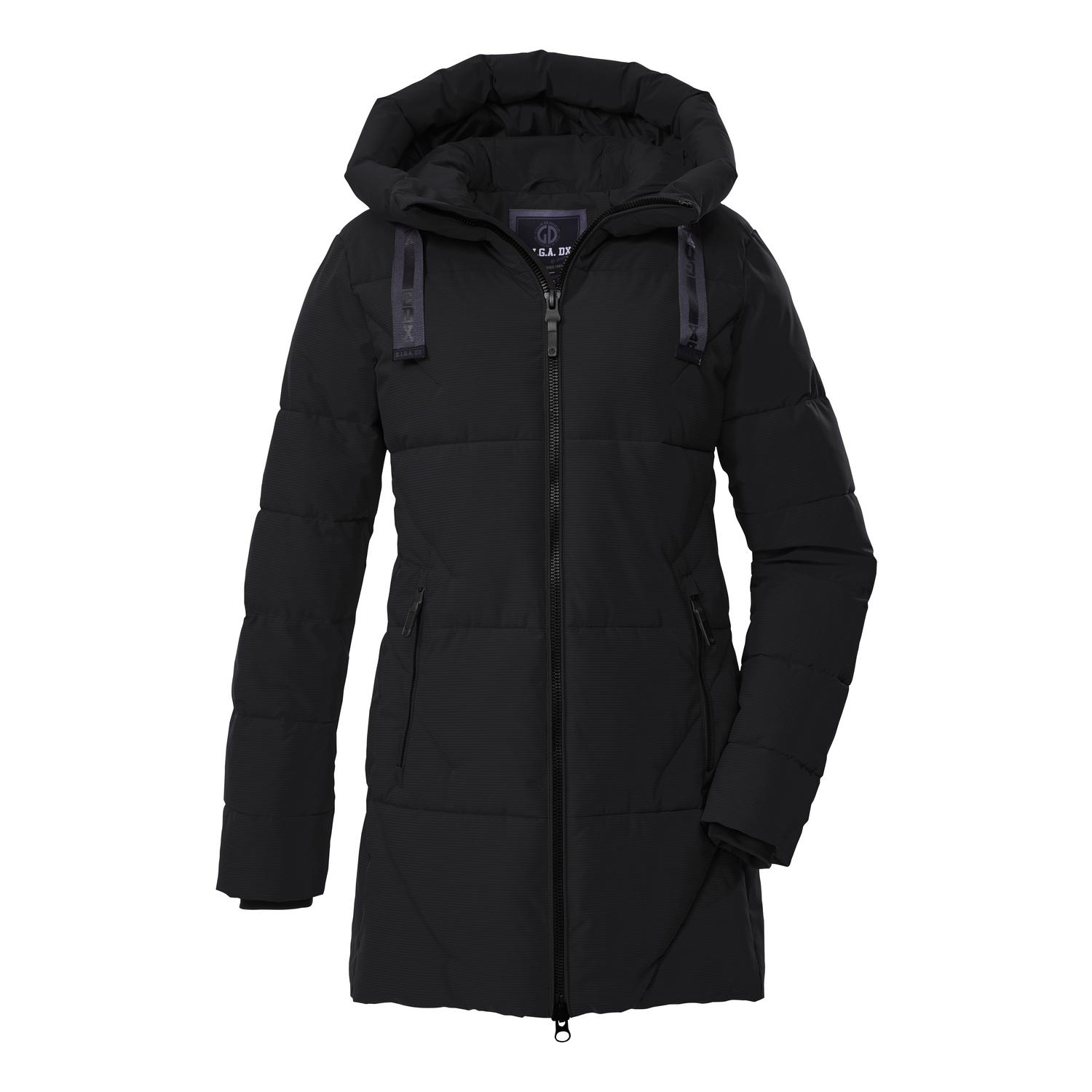 Damen Funktionsparka in Daunenoptik mit Kapuze wasserabweisend, (10.000 mm), atmungsaktiv, winddicht 2-Wege-Zipper und seitliche Reißverschlüsse Ärmelabschlüsse mit bequemen Strickbündchen PFAs-freie Imprägnierung, recyceltes Material Name: GW 30 WMN QLTD PRK Saison: Herbst/Winter Der dick gefütterte Steppparka mit großer Kapuze von G.I.G.A DX zeichnet sich durch seine Kombination aus Funktion und lässigem Casual Style aus. Der Parka ist wasserabweisend und winddicht mit einer 10.000 mm Wassersäule. Gleichzeitig ist er atmungsaktiv mit einer Wasserdampfdurchlässigkeit von 3.000 g/m²/24 h. Die Strickbündchen an den Ärmelabschlüssen halten warm und sind besonders bequem. Der 2-Wege-Zipper und seitliche Reißverschlüsse versprechen viel Bewegungsfreiheit. Zwei große Zippertaschen und eine Innentasche bieten genügend Stauraum für wichtige Dinge. killtec liegt es besonders am Herzen, die Kollektionen nachhaltiger und zukunftsfähiger zu machen. So setzt killtec verstärkt auf verantwortungsbewusstere Herstellungsverfahren. Dieser Parka wurde daher PFAs-frei imprägniert und teilweise aus recyceltem Material hergestellt.