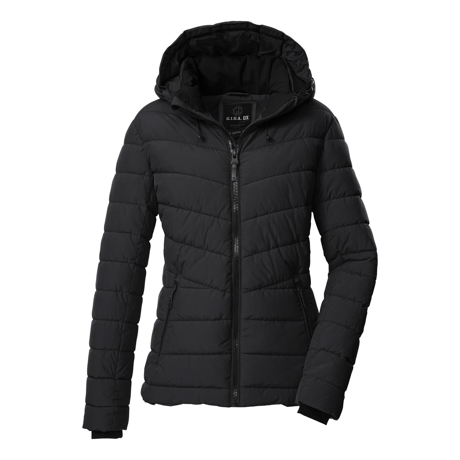 Damen Funktionsjacke in Daunenoptik mit abzippbarer Kapuze wasserabweisend, 8.000 mm Wassersäule, atmungsaktiv moderne Steppung, hochwertige Accessoires PFAs-freie Imprägnierung, teilweise aus recyceltem Material Seitentaschen und Innentasche Name: GW 32 WMN QLTD JCKT Saison: Herbst/Winter Die Damen Funktionsjacke von G.I.G.A. DX besticht durch ihre elegante Steppung und hochwertige Accessoires. Der wasserabweisende und atmungsaktive Oberstoff mit einer 8.000 mm Wassersäule sorgt für Wetterschutz und optimalen Tragekomfort. Die Kapuze ist regulierbar und lässt sich bei Bedarf abzippen. Die Strickbündchen an den Ärmelabschlüssen verhindern das Eindringen von Kälte und Wind. Die beiden Eingrifftaschen sind mit Zippern verschließbar, sodass nichts verloren geht. Eine Innenasche bietet weiteren Stauraum. Der Kinnschutz am Frontreißverschluss verhindert das Einklemmen der Haut. killtec liegt es besonders am Herzen, die Kollektionen nachhaltiger und zukunftsfähiger zu machen. So setzt killtec verstärkt auf verantwortungsbewusstere Herstellungsverfahren. Diese Jacke wurde daher PFAs-frei imprägniert und teilweise aus recycelten Materialien hergestellt.