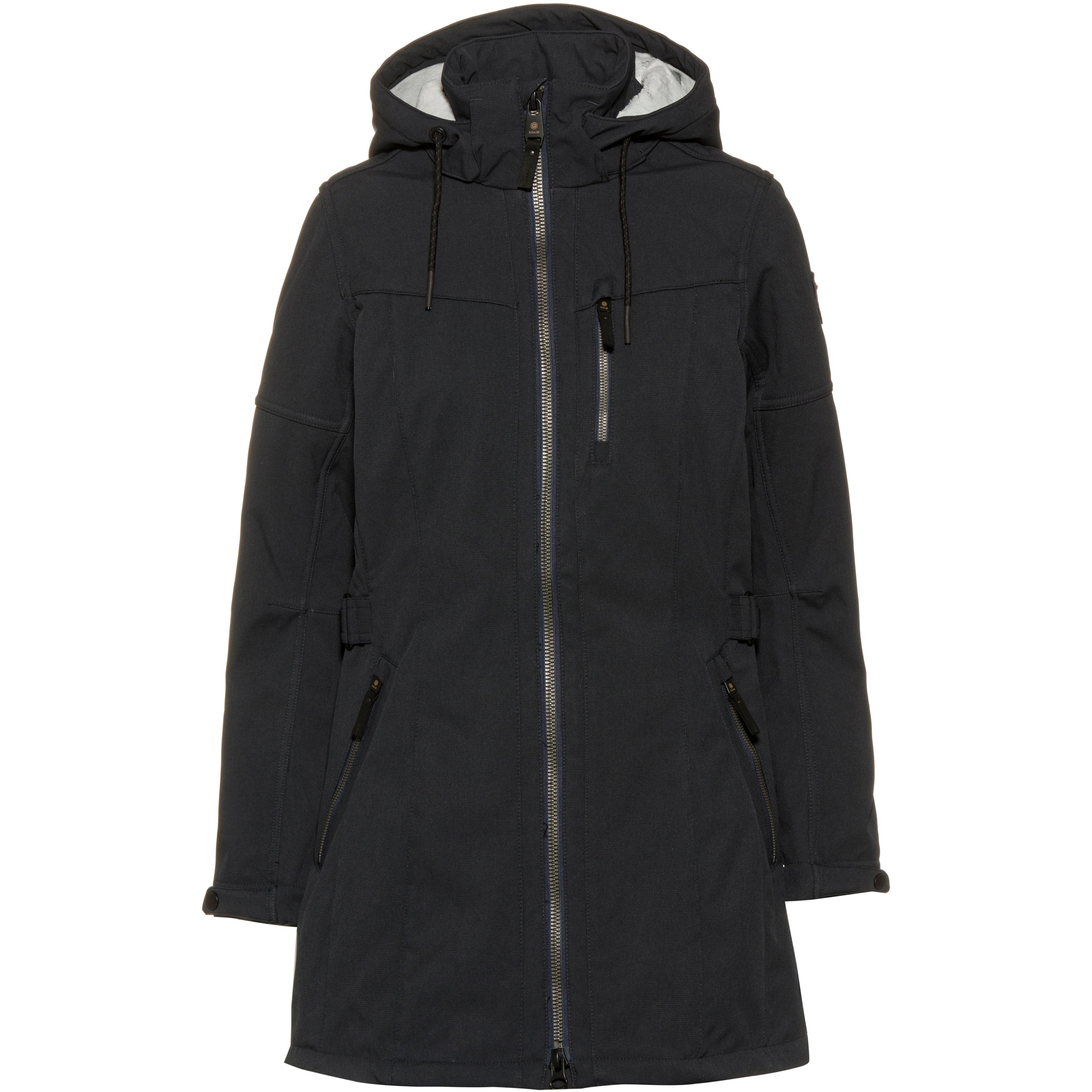 Mantel aus windabweisendem Softshell-Material mit ohne PFC hergestellter PU-Beschichtung; wasserabweisend dank der pflanzenbasierten Teflon EcoElite™-Veredelung; abnehmbare Kapuze mit Kordelzug; hoher Stehkragen; durchgehender 2-Wege-Reißverschluss mit Kinnschutz; Labelpatch am Ärmel; 1 Brusttasche und 2 seitliche Eingrifftaschen mit Reißverschluss; Taille und Ärmelabschlüsse mit Druckknöpfen in der Weite regulierbar; Futter aus weichem Teddyfleece; normale Passform; Wassersäule: 8.000 mm; Material 100% Polyester.
