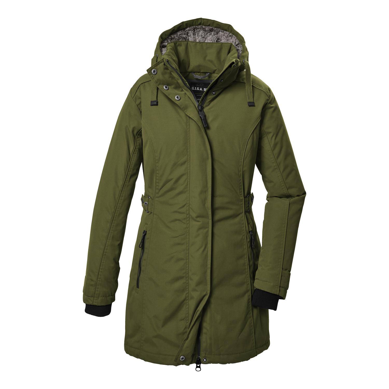 Damen Funktionsparka mit abzippbarer Kapuzeverschweißte Nähte, wasserdicht, atmungsaktivWarmes Fleece im Rückenbereich und in der KapuzeÄrmelabschlüsse, Saum und Taille regulierbarPFAs-freie ImprägnierungName: GW 70 WMN PRKSaison: Herbst/WinterDer Damen Funktionsparka von G.I.G.A. DX begleitet zuverlässig durch den Winter. Der Parka hat verschweißte Nähte und ist wind- und wasserdicht mit einer 8.000 mm Wassersäule. Gleichzeitig ist er atmungsaktiv. Weiches Fleece im Rückenbereich und in der abzippbaren Kapuze verspricht kuschelige Wärme. Der verdeckte 2-Wege-Reißverschluss lässt sich von oben und unten öffnen und sorgt so für Bewegungsfreiheit. Die verstellbaren Ärmelabschlüsse sind mit bequemen Strickbündchen ausgestattet. Die Weite von Taille und Saum ist individuell regulierbar. Die beiden Seitentaschen sind verschließbar, sodass nichts verloren geht. Eine Handytasche innen bietet weiteren Stauraum. killtec liegt es besonders am Herzen, die Kollektionen nachhaltiger und zukunftsfähiger zu machen. So setzt killtec verstärkt auf verantwortungsbewusstere Herstellungsverfahren. Diese Jacke wurde daher mit fluorfreien Mitteln imprägniert.