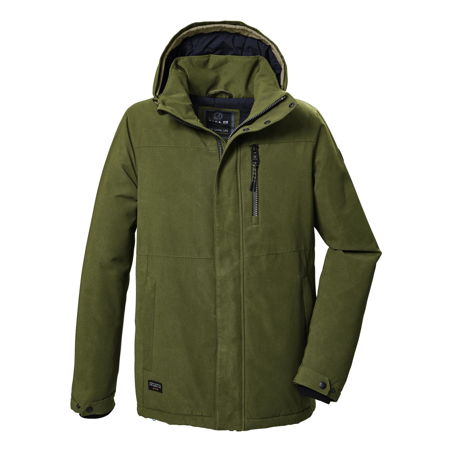 Herren Funktionsjacke mit abzippbarer, regulierbarer Kapuzeverschweißte Nähte, wasserdicht, atmungsaktivverdeckter 2-Wege-Reißverschluss mit KinnschutzPFAs-freie Imprägnierung, teilweise recyceltes Materialbequeme Strickbündchen, drei TaschenName: GW 71 MN JCKTSaison: Herbst/WinterDie gefütterte Herren G.I.G.A. DX Winterjacke besticht durch ihren Casual Style und funktionale Eigenschaften. Die Jacke hat verschweißte Nähte und ist wasserdicht mit einer Wassersäule von 8.000 mm und gleichzeitig atmungsaktiv. Der verdeckte Reißverschluss ist mit einem praktischen Kinnschutz versehen. Die Kapuze ist regulierbar und kann bei Bedarf abgenommen werden. Zwei seitliche Eingrifftaschen, eine Brusttasche und eine Innentasche bieten genügend Stauraum für Handy und Co. Die bequemen Strickbündchen an den verstellbaren Ärmelbündchen verhindern das Eindringen von Wind in den Ärmel. killtec liegt es besonders am Herzen, die Kollektionen nachhaltiger und zukunftsfähiger zu machen. So setzt killtec verstärkt auf verantwortungsbewusstere Herstellungsverfahren. Diese Jacke wurde daher mit fluorfreien Mitteln imprägniert und wurde aus recyceltem Material hergestellt.
