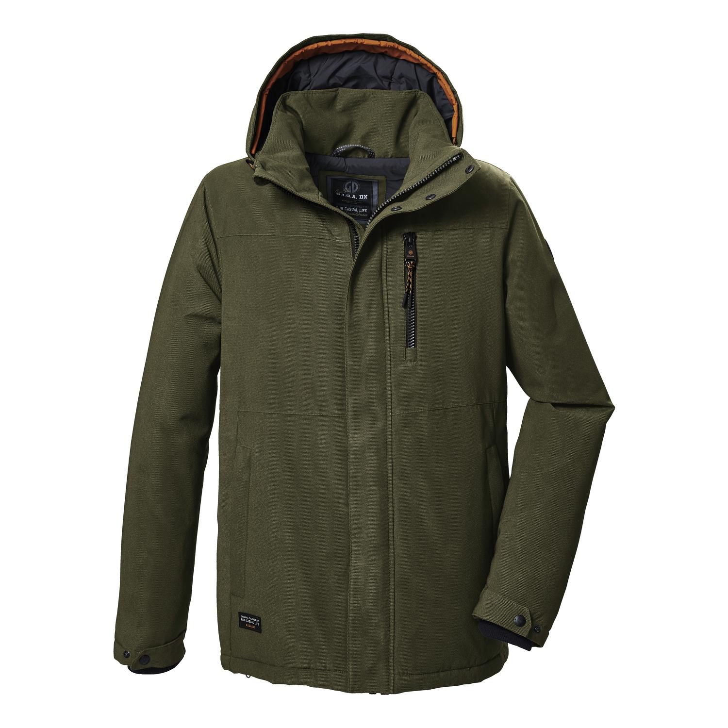 Herren Funktionsjacke mit abzippbarer, regulierbarer Kapuzeverschweißte Nähte, wasserdicht, atmungsaktivverdeckter 2-Wege-Reißverschluss mit KinnschutzPFAs-freie Imprägnierung, teilweise recyceltes Materialbequeme Strickbündchen, drei TaschenName: GW 71 MN JCKTSaison: Herbst/WinterDie gefütterte Herren G.I.G.A. DX Winterjacke besticht durch ihren Casual Style und funktionale Eigenschaften. Die Jacke hat verschweißte Nähte und ist wasserdicht mit einer Wassersäule von 8.000 mm und gleichzeitig atmungsaktiv. Der verdeckte Reißverschluss ist mit einem praktischen Kinnschutz versehen. Die Kapuze ist regulierbar und kann bei Bedarf abgenommen werden. Zwei seitliche Eingrifftaschen, eine Brusttasche und eine Innentasche bieten genügend Stauraum für Handy und Co. Die bequemen Strickbündchen an den verstellbaren Ärmelbündchen verhindern das Eindringen von Wind in den Ärmel. killtec liegt es besonders am Herzen, die Kollektionen nachhaltiger und zukunftsfähiger zu machen. So setzt killtec verstärkt auf verantwortungsbewusstere Herstellungsverfahren. Diese Jacke wurde daher mit fluorfreien Mitteln imprägniert und wurde aus recyceltem Material hergestellt.