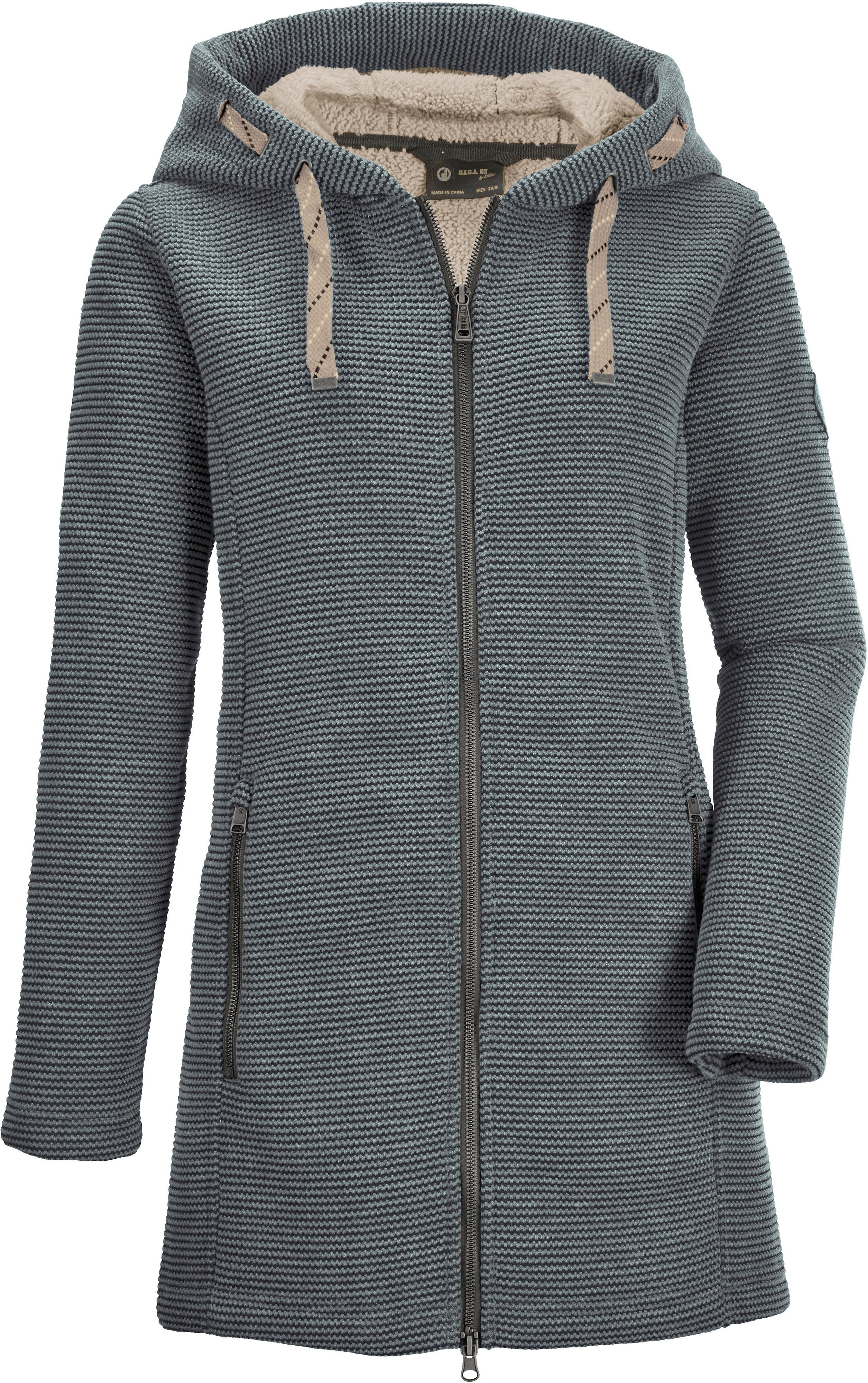 Lange, wärmende Strickfleecejacke aus Sherpa Fleece; geräumige Kapuze mit Kordelzug; 2-Wege-Frontreißverschluss; 2 Seitentaschen mit Reißverschlüssen und Zipgaragen; kuschelige Innenseite; Material I 100% Polyester, Material II 80% Polyester, 20% Elastan.