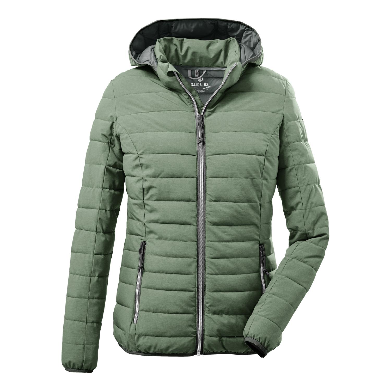 Damen Funktionsjacke mit abzippbarer Kapuze wasserabweisend und winddicht seitliche Eingrifftaschen mit Reißverschluss Saum und Ärmelbündchen elastisch Name: Uyaka Saison: Ganzjahr Die leichte Damen Funktionsjacke von G.I.G.A. DX in Daunenoptik hält schön warm und ist wasserabweisend. Der hohe Kragen und die Kapuze der Steppjacke schützen zusätzlich bei widrigem Wetter. Die Kapuze lässt sich bei Bedarf ganz einfach abzippen und ist, genau wie Saum und Ärmelbündchen, elastisch. Die seitlichen Eingrifftaschen sind mit Zippern versehen, sodass nichts verloren gehen kann. Die besondere Melange Optik macht die Steppjacke auch optisch zu einem Highlight. killtec liegt es besonders am Herzen, die Kollektionen nachhaltiger und zukunftsfähiger zu machen. So setzt killtec verstärkt auf verantwortungsbewusstere Herstellungsverfahren. Diese Jacke ist daher PFC-frei.