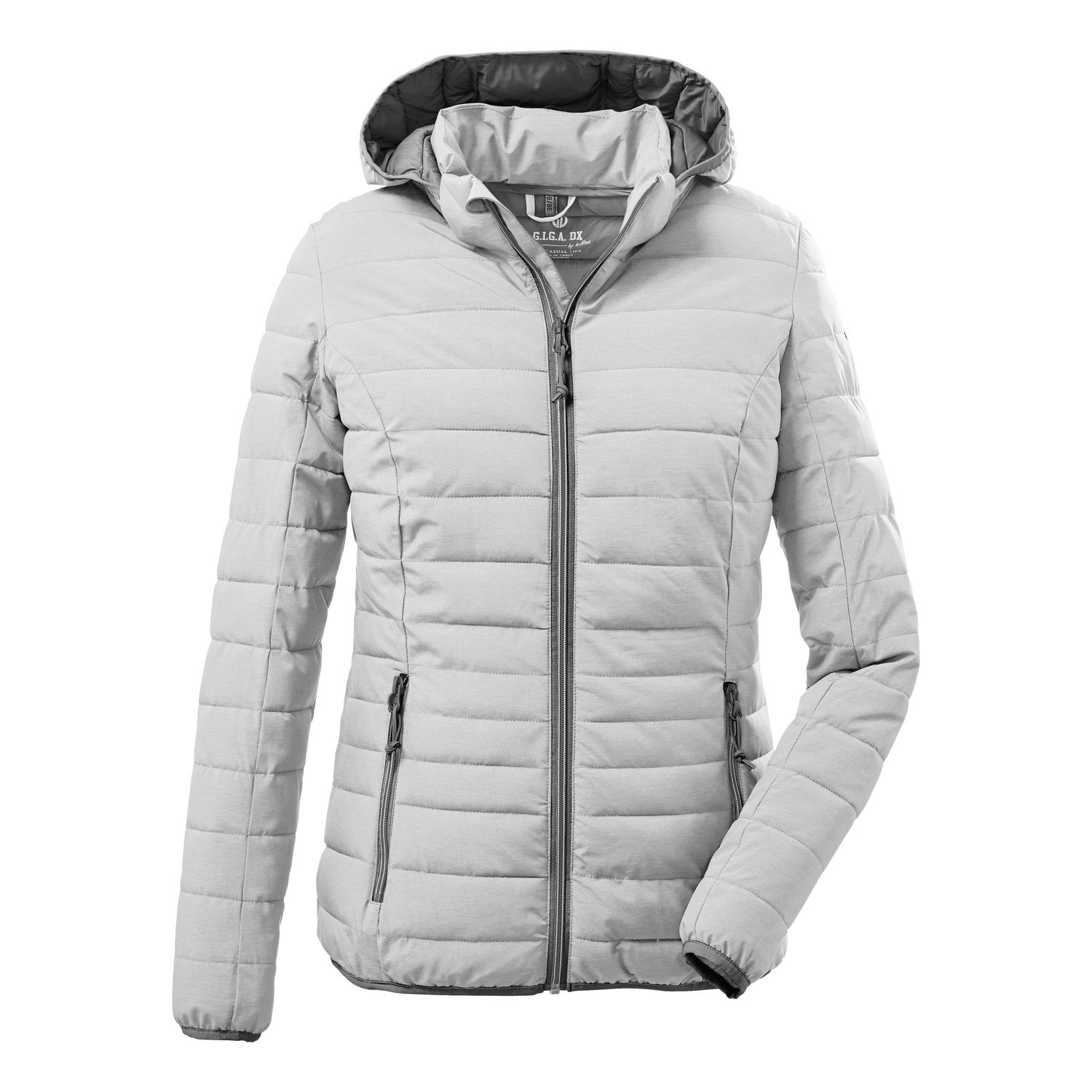 Damen Funktionsjacke mit abzippbarer Kapuze wasserabweisend und winddicht seitliche Eingrifftaschen mit Reißverschluss Saum und Ärmelbündchen elastisch Name: Uyaka Saison: Ganzjahr Die leichte Damen Funktionsjacke von G.I.G.A. DX in Daunenoptik hält schön warm und ist wasserabweisend. Der hohe Kragen und die Kapuze der Steppjacke schützen zusätzlich bei widrigem Wetter. Die Kapuze lässt sich bei Bedarf ganz einfach abzippen und ist, genau wie Saum und Ärmelbündchen, elastisch. Die seitlichen Eingrifftaschen sind mit Zippern versehen, sodass nichts verloren gehen kann. Die besondere Melange Optik macht die Steppjacke auch optisch zu einem Highlight. killtec liegt es besonders am Herzen, die Kollektionen nachhaltiger und zukunftsfähiger zu machen. So setzt killtec verstärkt auf verantwortungsbewusstere Herstellungsverfahren. Diese Jacke ist daher PFC-frei.