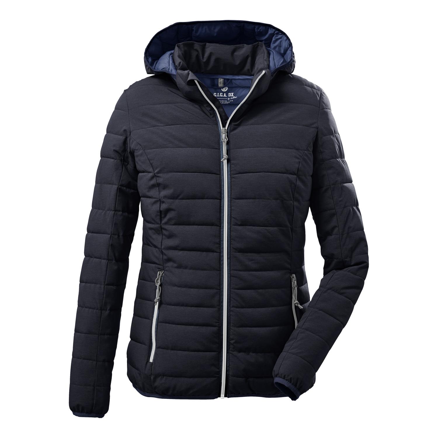 Damen Funktionsjacke mit abzippbarer Kapuze wasserabweisend und winddicht seitliche Eingrifftaschen mit Reißverschluss Saum und Ärmelbündchen elastisch Name: Uyaka Saison: Ganzjahr Die leichte Damen Funktionsjacke von G.I.G.A. DX in Daunenoptik hält schön warm und ist wasserabweisend. Der hohe Kragen und die Kapuze der Steppjacke schützen zusätzlich bei widrigem Wetter. Die Kapuze lässt sich bei Bedarf ganz einfach abzippen und ist, genau wie Saum und Ärmelbündchen, elastisch. Die seitlichen Eingrifftaschen sind mit Zippern versehen, sodass nichts verloren gehen kann. Die besondere Melange Optik macht die Steppjacke auch optisch zu einem Highlight. killtec liegt es besonders am Herzen, die Kollektionen nachhaltiger und zukunftsfähiger zu machen. So setzt killtec verstärkt auf verantwortungsbewusstere Herstellungsverfahren. Diese Jacke ist daher PFC-frei.