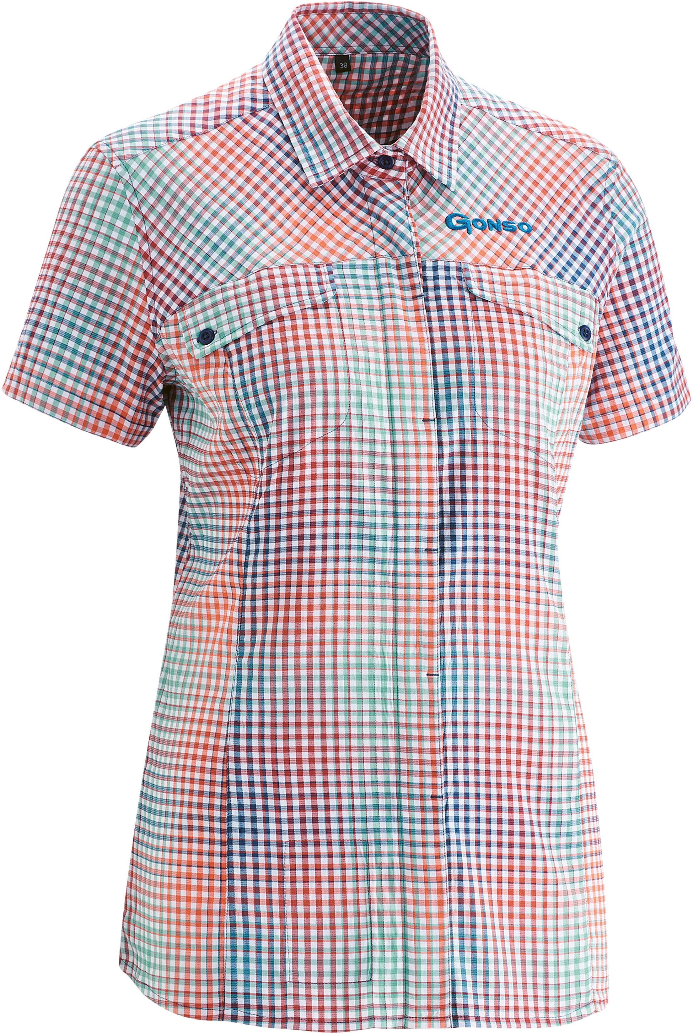 Sportlich geschnittene Radbluse in kariertem Design; klassischer Kragen; verdeckte Knopfleiste; 2 Brusttaschen mit Druckknöpfen; kurze Ärmel; integriertes Brillenputztuch; atmungsaktiv; geruchshemmende Silver+ Technologie; körpernahe Passform; elastisch; Material 97% Polyester, 3% Elastan.