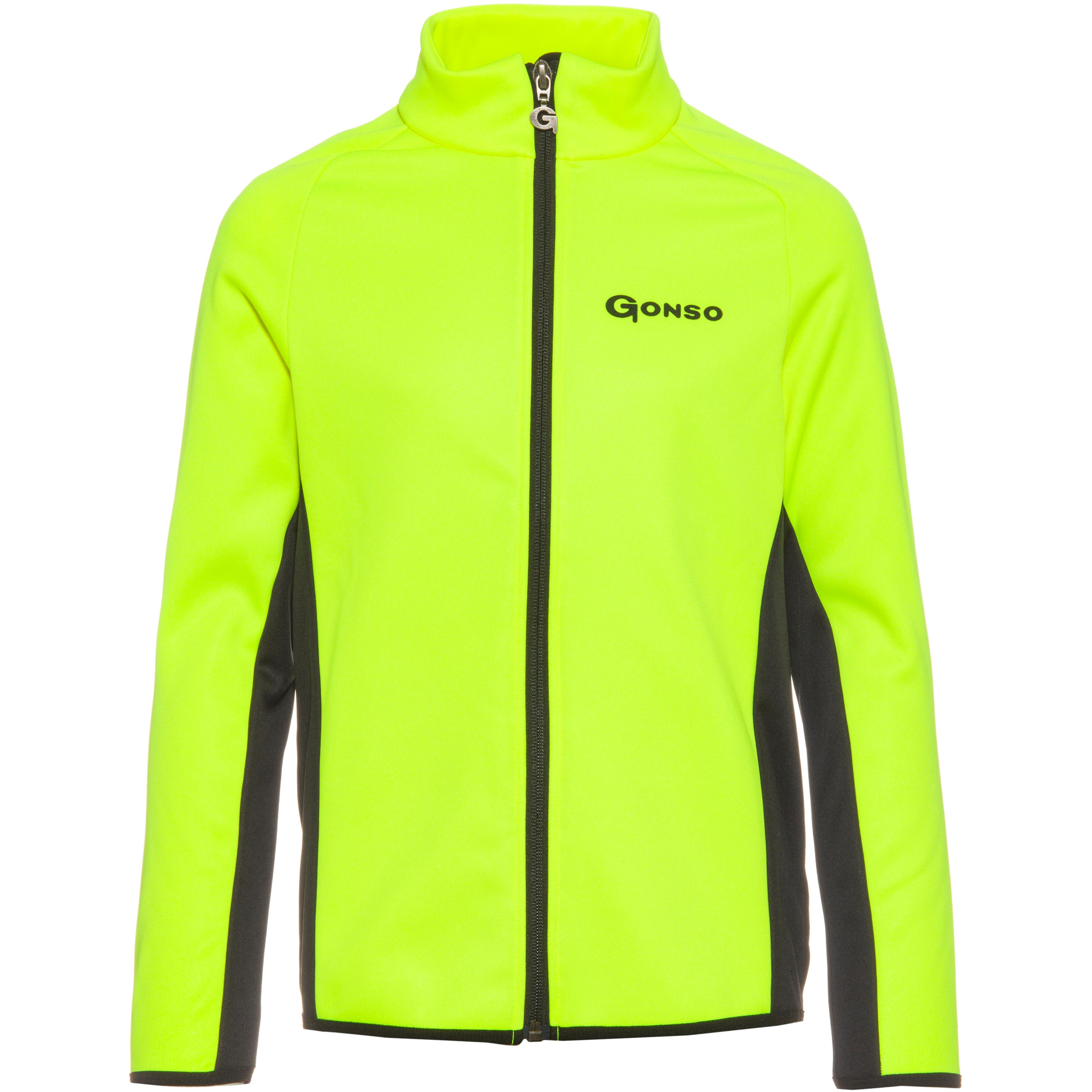 Fahrradjacke in gut sichtbarem Design; weiches Softshell-Material; winddicht und strapazierfähig; hohe Wärmeisolation dank G-Shell Membran; atmungsaktiver Einsatz am Rücken; Raglanärmel mit vorgeformten Ellbogen für optimale Bewegungsfreiheit; mittelhoher Stehkragen; durchgehender Reißverschluss; Logodetails vorne und hinten; reflektierende Elemente; Reißverschlusstasche auf der Rückseite; elastische Einfassungen an Ärmelabschlüssen und Saum; körpernahe Passform; Material 100% Polyester.