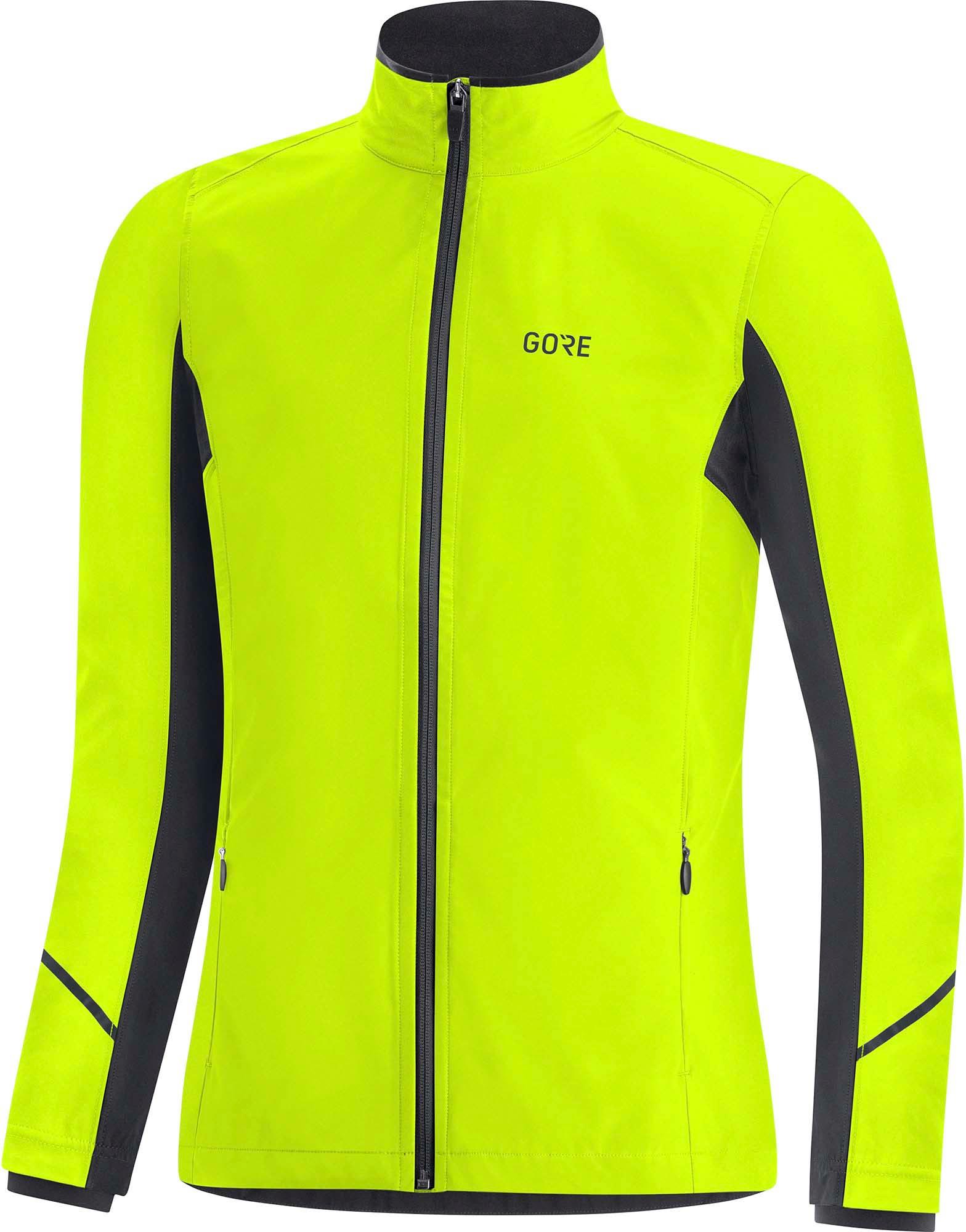 GOREWEAR R3 INFINIUM. Wetterfeste Laufjacke mit teilweise GORE-TEX INFINIUM™ Technologie und GORE® WINDSTOPPER® Membran; absolut winddicht; dauerhaft wasserabweisend und extrem atmungsaktiv; Stehkragen; unterlegter Frontreißverschluss; 2 seitliche Reißverschlusstaschen; elastische Ärmelbündchen; Saum mit Kordelzug; Nahtplatzierung auf das Tragen eines Rucksacks ausgelegt; Logo auf der Brust; Active Fit; Material 86% Polyester, 14% Elastan.