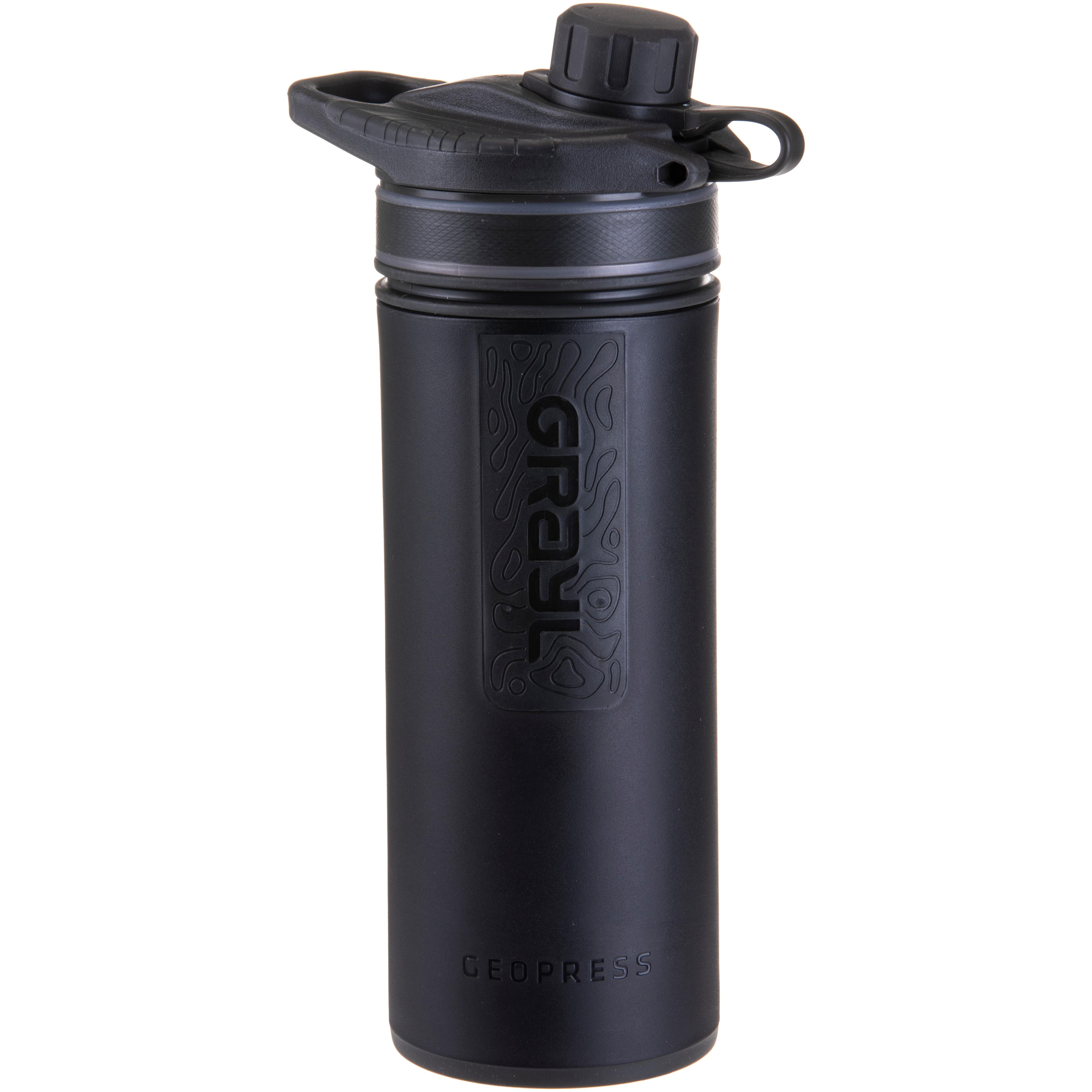 BPA-freie Trinkflasche mit austauschbarer Aktivkohlefilter-Katusche (Wasserfilter), welche das Wasser von Schwebstoffen und Mikropartikeln sowie Viren, Bakterien und Protozoen befreit; ausgelegt für bis zu 350 Zyklen (ca. 250 Liter); schnelle Durchflussrate: 5 Liter/Minute; einhändig bedienbarer SimpleVent Drink Cap; Fassungsvermögen: ca. 710 ml; Gewicht: ca. 450 g; Höhe: ca. 26,5 cm; Durchmesser (an der Basis): ca. 8,6 cm.