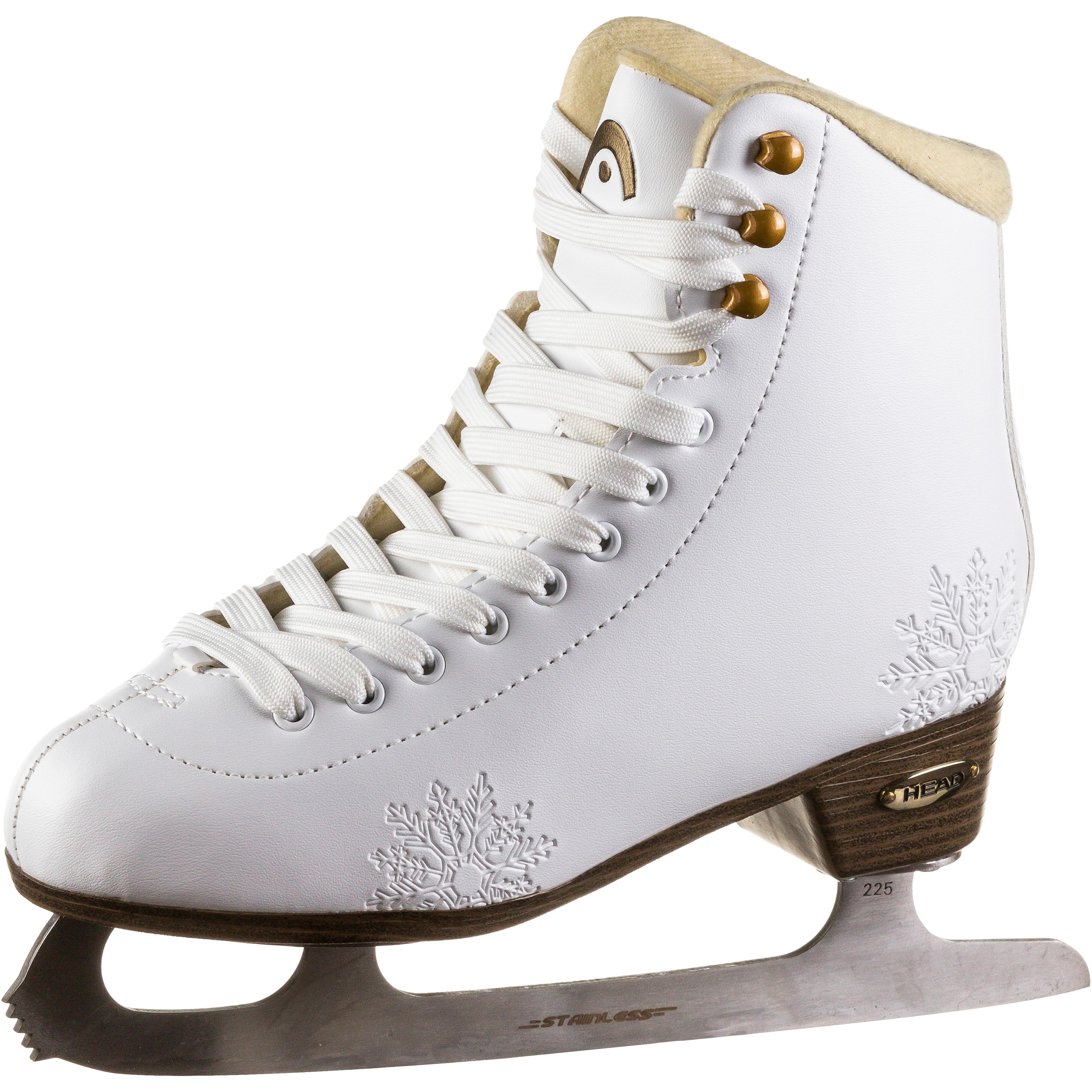 Elegante Eiskunstlauf-Schlittschuhe im klassischen Stiel; Obermaterial aus wasserabweisendem Synthetik-Leder; gepolsterte Oberkante des Schuhhalses für extra viel Komfort; gepolsterte Zungenkonstruktion; Schnürsystem; wärmendes, bequemes Futter aus Samtgewebe; rostfreie Edelstahl-Kufen.