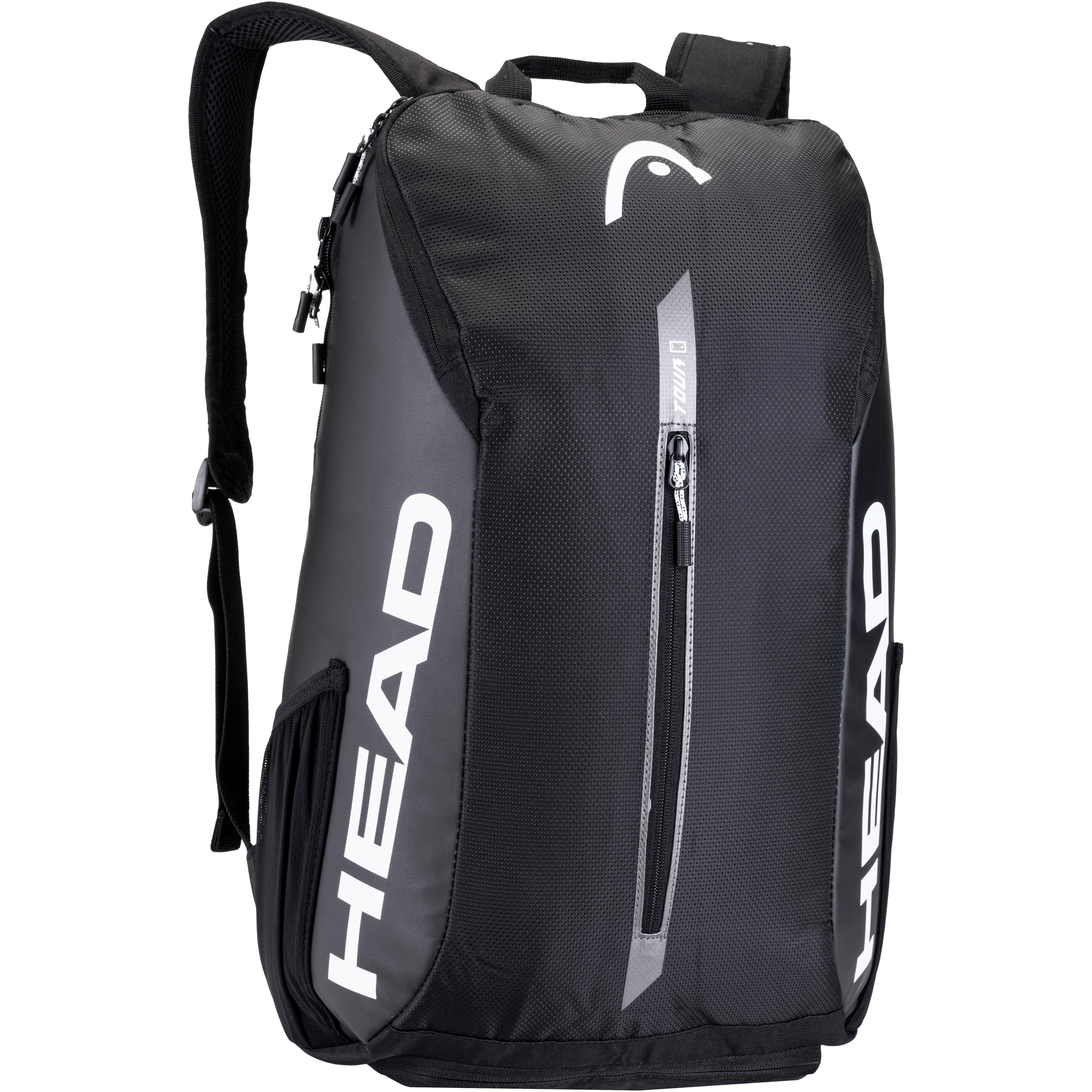 Tennisrucksack mit einem Schlägerfach für bis zu 2 Tennisschläger; stabilisierende Polsterung; verstellbare Schulterträger; ein geräumiges Hauptfach mit 2-Wege-Reißverschluss; Schuhfach an der Unterseite; eine Fronttasche mit Reißverschluss und 2 Netzseitentaschen; Volumen: 25 l; Maße (H/B/T): ca. 33,5 x 51 x 25 cm.