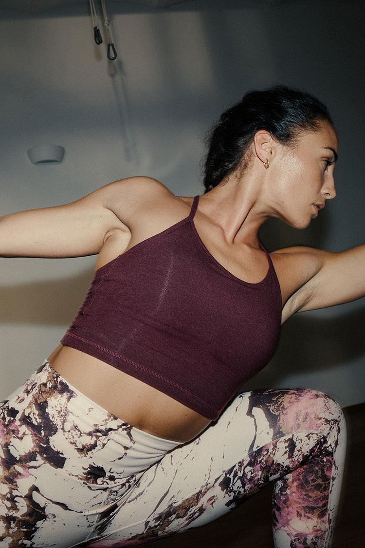 Yoga-Kollektionen bestehen oft aus recycelten und nachhaltigen Materialien. Der Bund ist meist breiter, um deinen Haltungen mehr Stabilität zu verleihen.