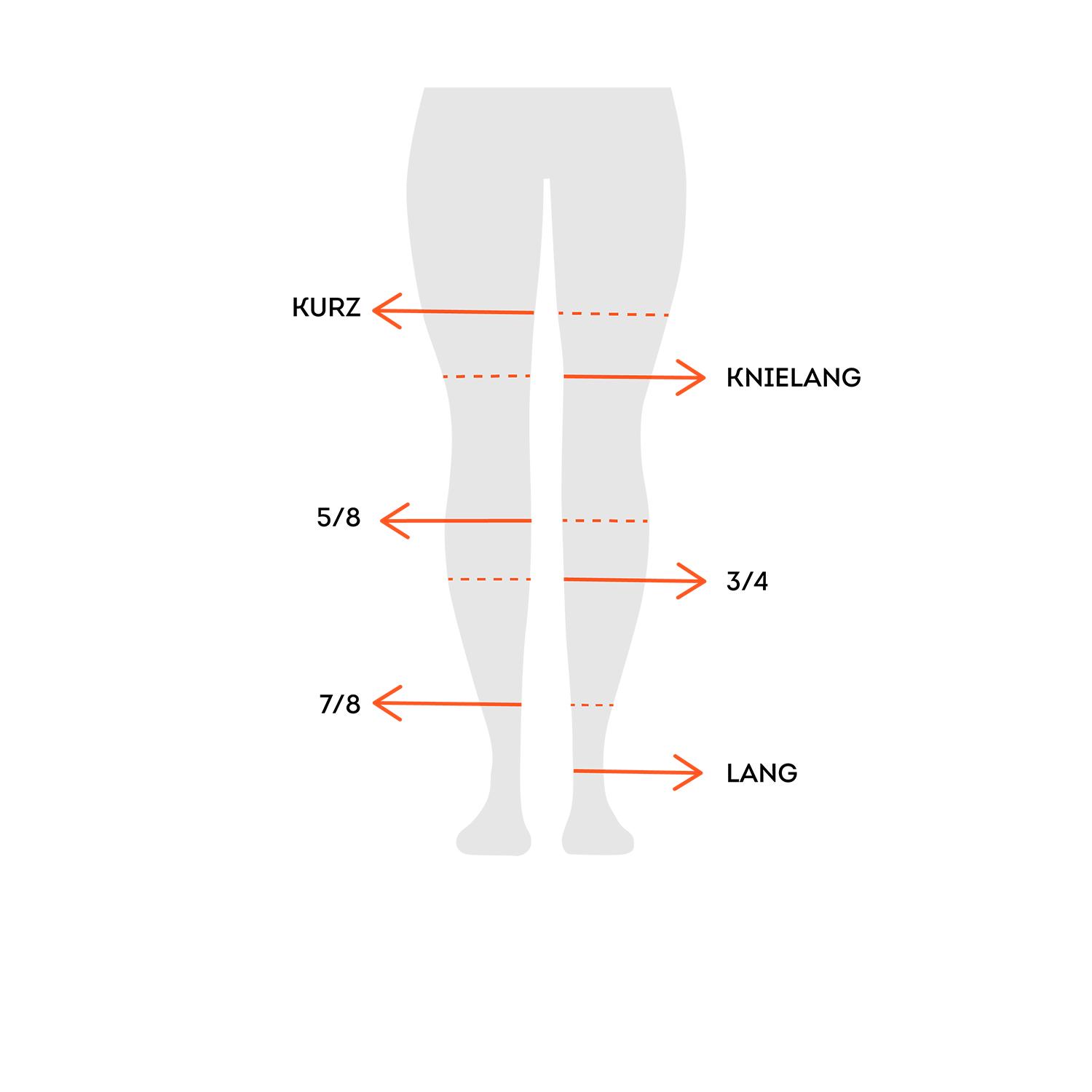 Auch in der Länge variieren die Tights von lang bis kurz, über 7/8 bis 3/4.