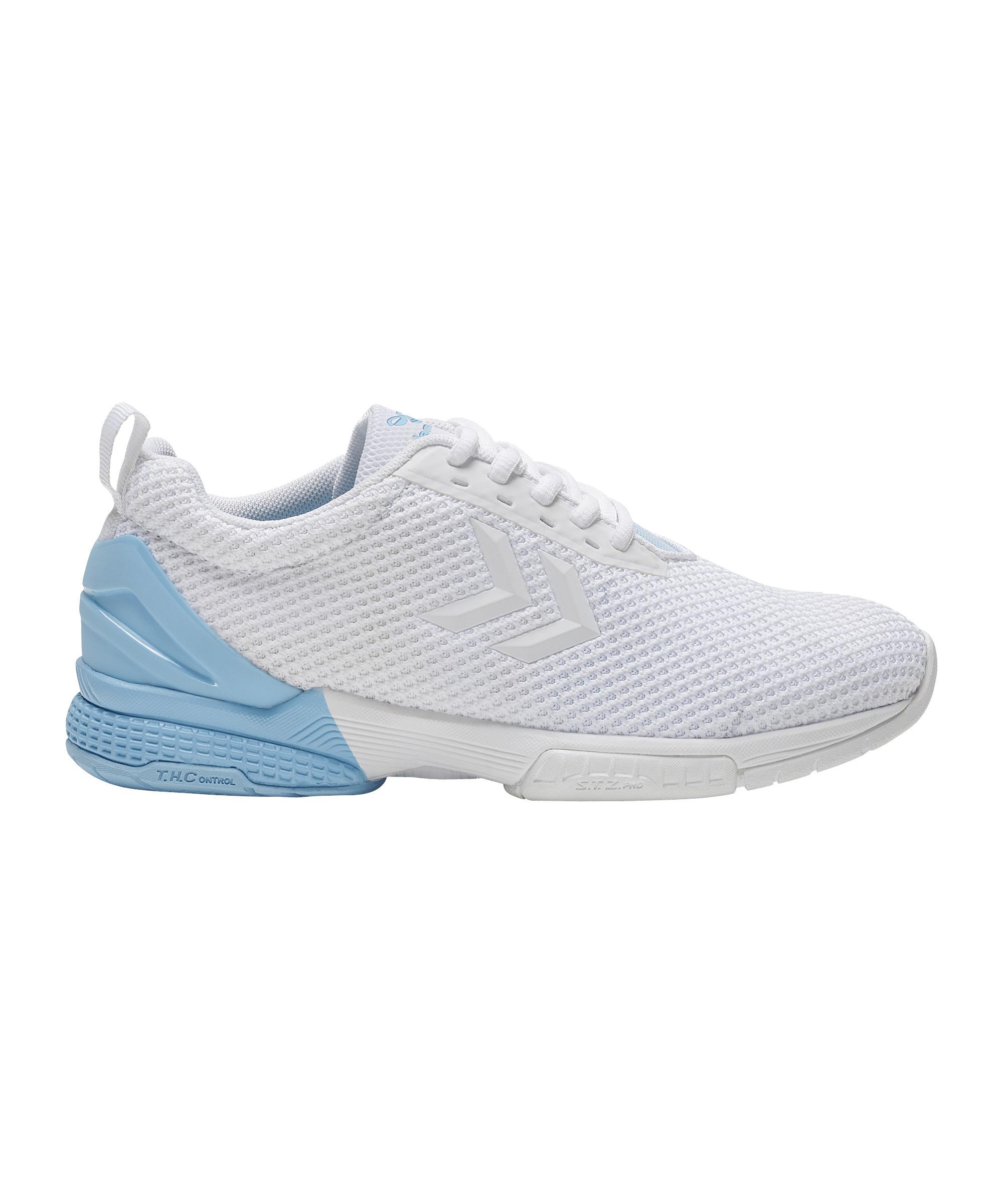 Mit den Hummel Aerocharge Fusion F8507 Schuhen kannst du auf dem Hallenboden richtig Gas geben. Diese Hummel Hallenschuhe sind ideal für intensive Indoor-Sportarten, bei denen Wendigkeit und Schnelligkeit gefragt sind. Die komfortable Passform sorgt dafür, dass du dich voll und ganz auf dein Spiel konzentrieren kannst, ohne Ablenkung durch unbequeme Druckstellen. Dank der robusten, belastbaren Konstruktion halten die Schuhe auch den härtesten Matches stand. Die normale Schnürung bietet dir sicheren Halt und eine individuelle Anpassung an deinen Fuß. Schnapp dir die Hummel Aerocharge Fusion F8507 und erlebe, wie sie dein Spiel auf das nächste Level heben. Du wirst die Qualität und den Komfort von Hummel bei jedem Schritt spüren. Produktdetails:Herstellerfarbbezeichnung: sky blueHauptfarbe: BlauTechnologie: Komfortabel, Haltbarkeit Obermaterial: KnitSchuhbreite: Normal