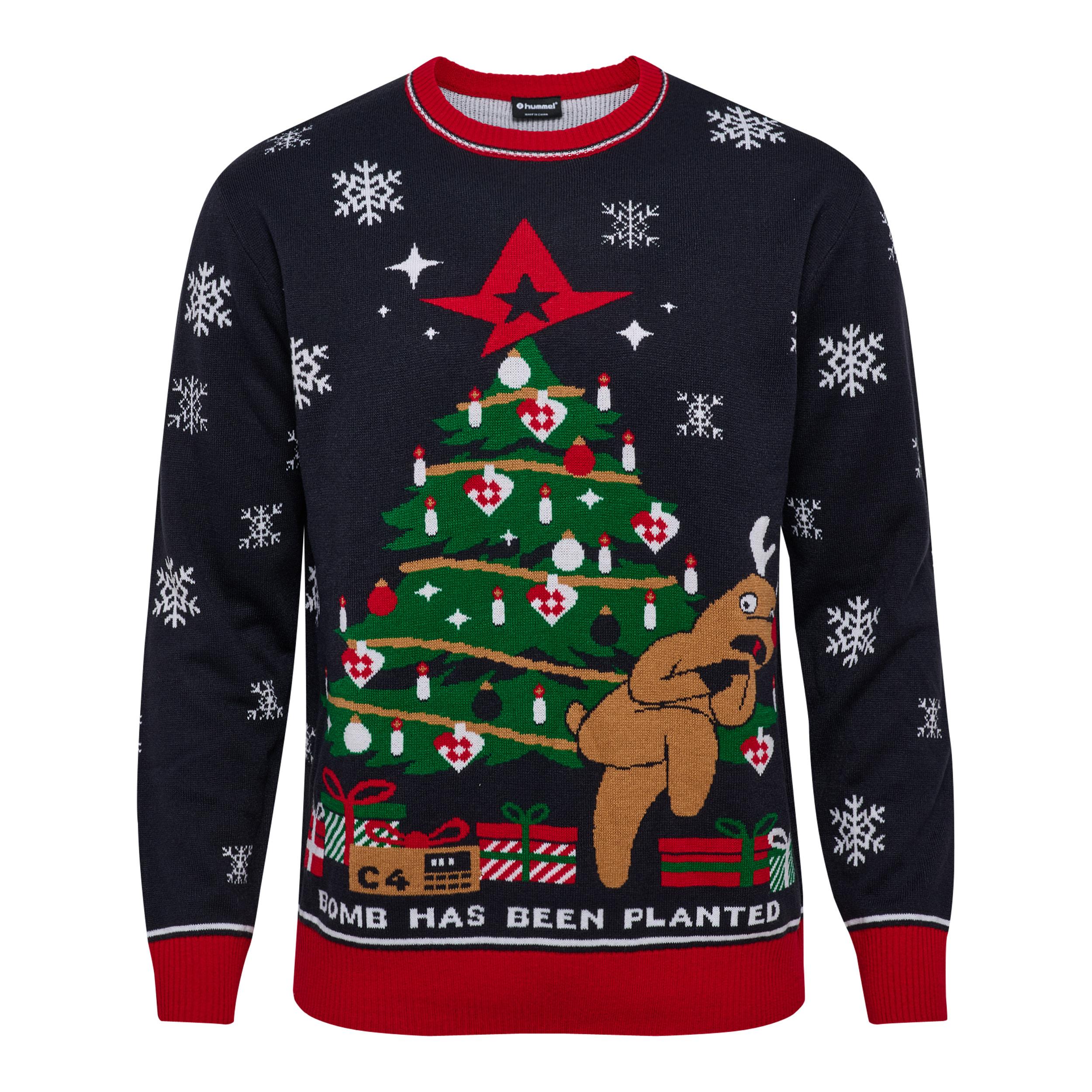 Feiern Sie Weihnachten mit dem diesjährigen Astralis XMAS. Der Pullover hat eine dekorative Weihnachtsgrafik im Stoff integriert, die sowohl Schneeflocken, ein Rentier und einen geschmückten Weihnachtsbaum zeigt - natürlich mit dem Astralis-Stern oben drauf. Der Text "bomb has been planted" steht auf der Vorderseite unten, während das Astralis-Logo oben auf der Rückseite zu sehen ist.