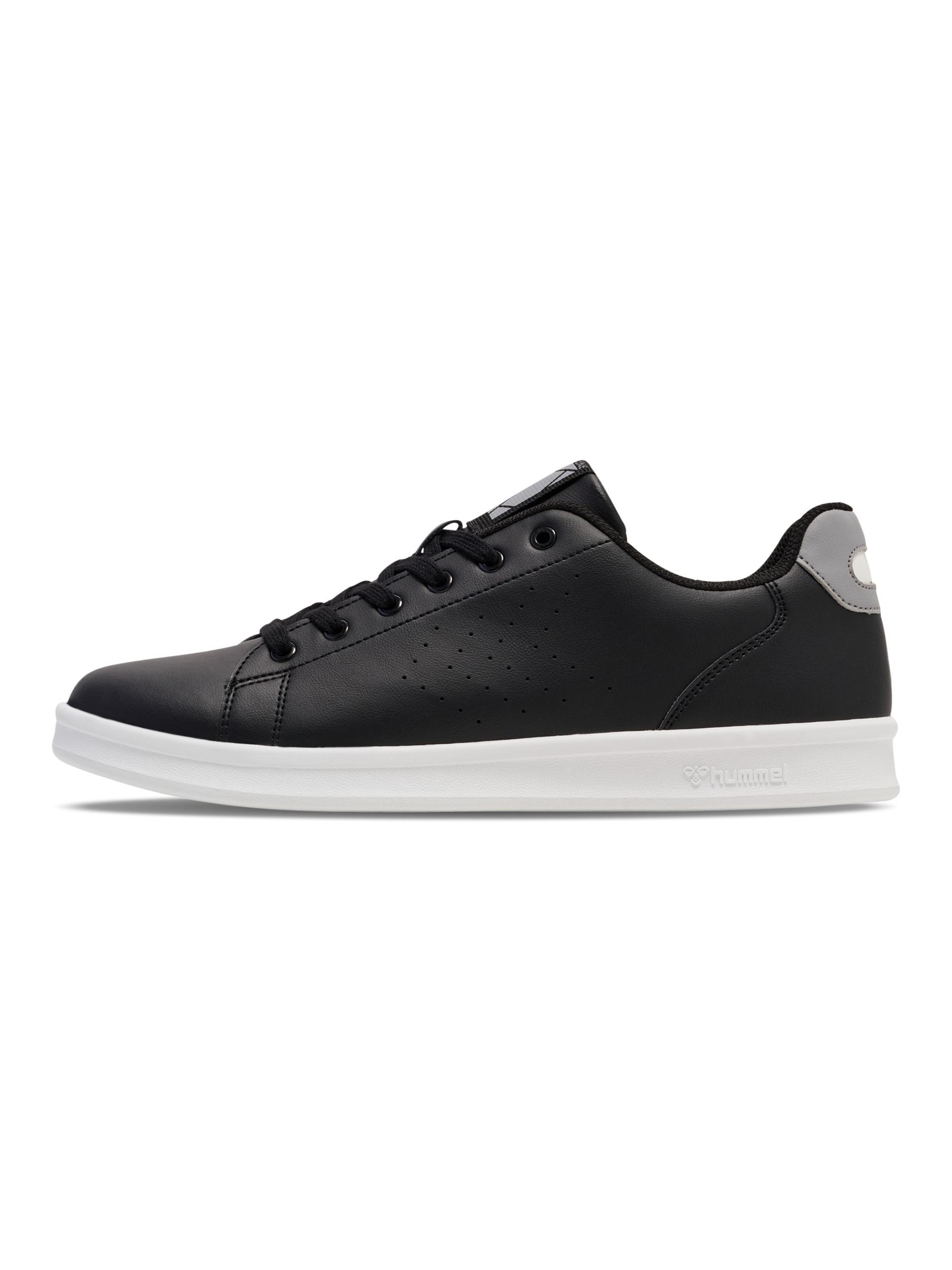 Der COURT LINE hat eine vom Tennis inspirierte niedrig geschnittene Silhouette mit Retro-Designmerkmalen. Dank der griffigen TPR-Außensohle und der gepolsterten Zunge ist er leicht und bequem. Die Perforationen im Obermaterial sorgen für hervorragende Atmungsaktivität. Sie sind so angeordnet, dass sie auf dezente, stylishe Weise die charakteristischen Winkel von hummel bilden.