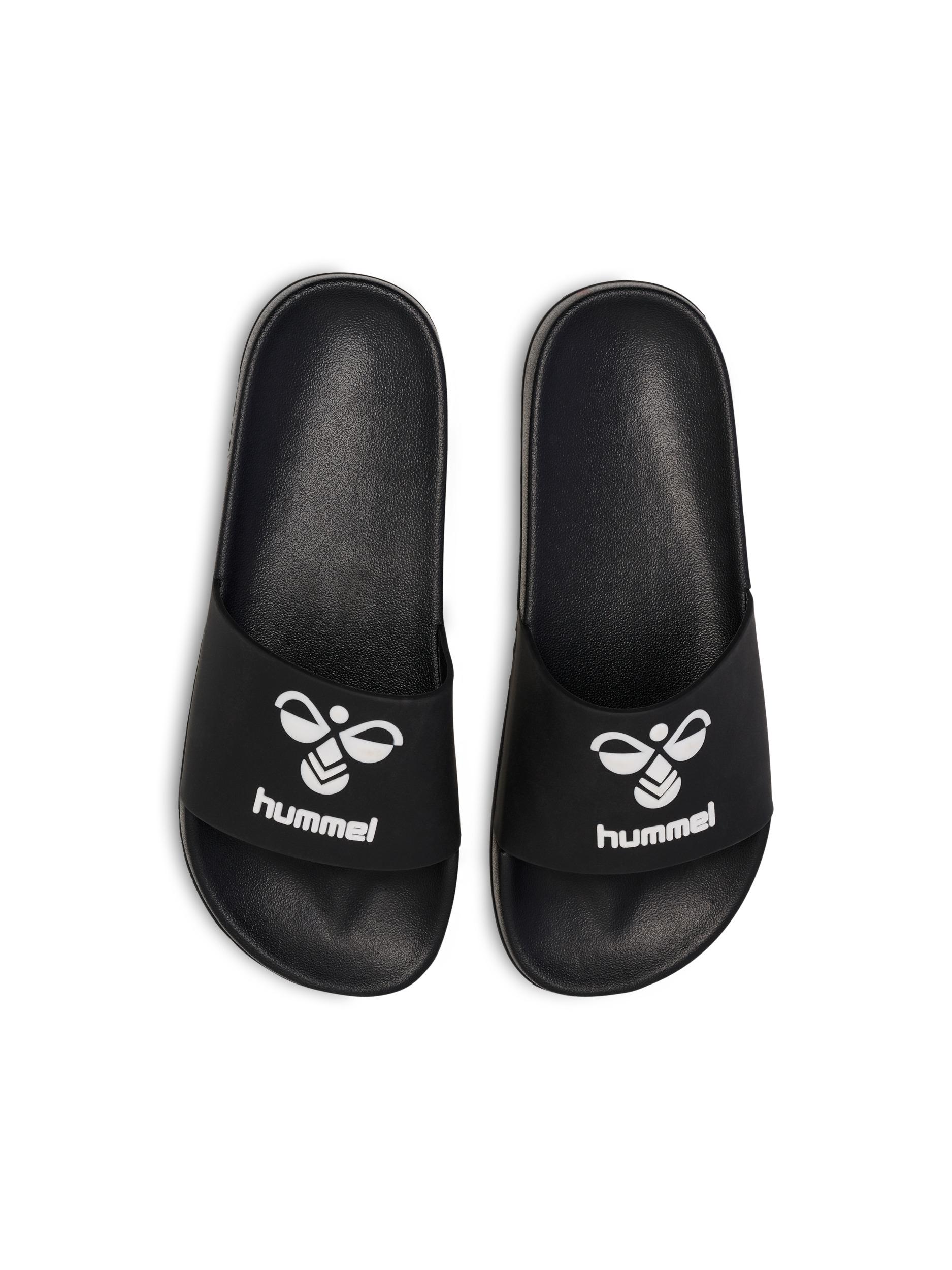Diese Slides überzeugen durch ihre weiche, stoßdämpfende EVA-Außensohle, die für ein leichtes und angenehmes Tragegefühl sorgt. Das geformte Fußbett bietet zusätzlichen Halt und Komfort, während das hummel Logo dem Design einen sportlichen Touch verleiht – ideal für entspannte Tage oder den Weg zum Training.