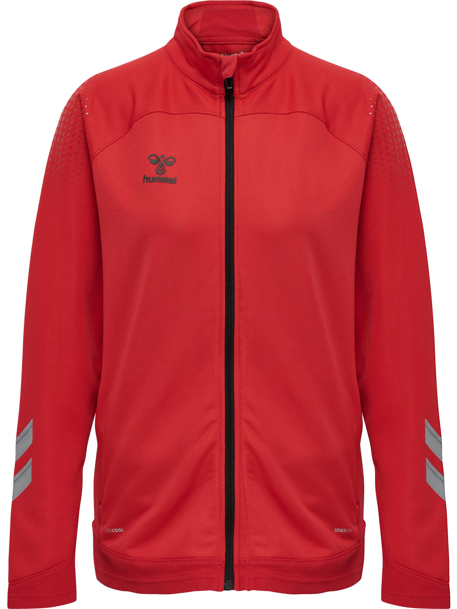 Die hmlLEAD WOMEN POLY ZIP JACKET besteht aus leichtem Sweatstoff mit Stretch, sodass du dich auf oder abseits des Platzes bewegen kannst. Diese hummel® Jacke hat einen durchgehenden Reißverschluss vorne mit Reißverschlussschutz sowie zwei Seitentaschen mit Reißverschluss. Die Kontrasteinsätze an der hinteren Passe und an den Seiten präsentieren ein klassisches Sportdesign.
