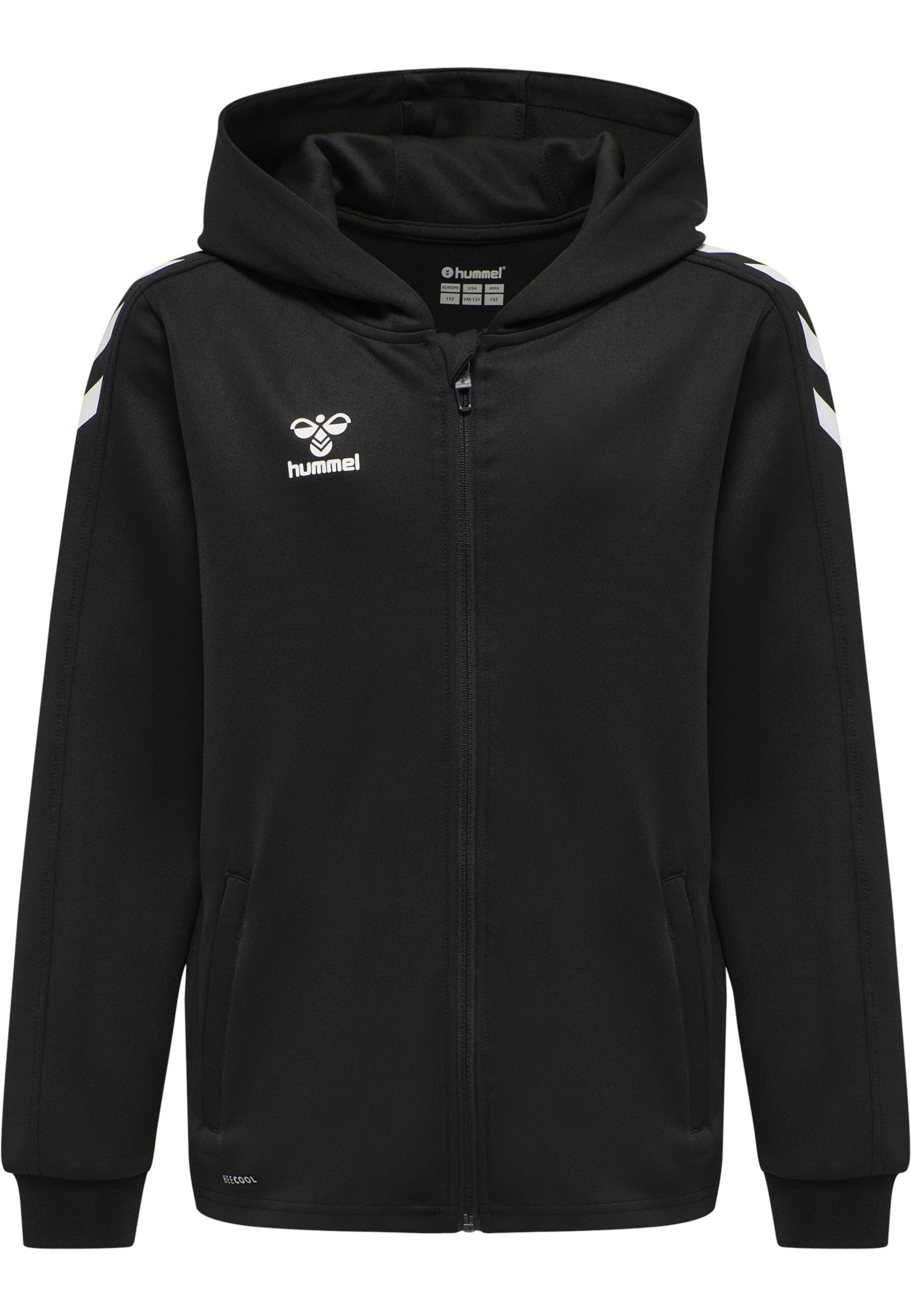 Was auch immer das Wetter in petto hat, der hmlCORE XK POLY ZIP HOOD SWEAT KIDS ist der perfekte Trainingshoodie. Der Sweatstoff sorgt für ein trockenes und frisches Tragegefühl und die BEECOOL® Technologie verbessert zusätzlich die Atmungsaktivität. Der Frontreißverschluss und die Kapuze bieten auf das Wetter abgestimmte Tragemöglichkeiten. Der Bund ist elastisch und gewährleistet etwas mehr Flexibilität und Komfort, damit die Kleinen sich ganz auf ihre Übungen konzentrieren können. Der auffällige hummel® Logoaufdruck und die legendären Winkel runden den Look ab.