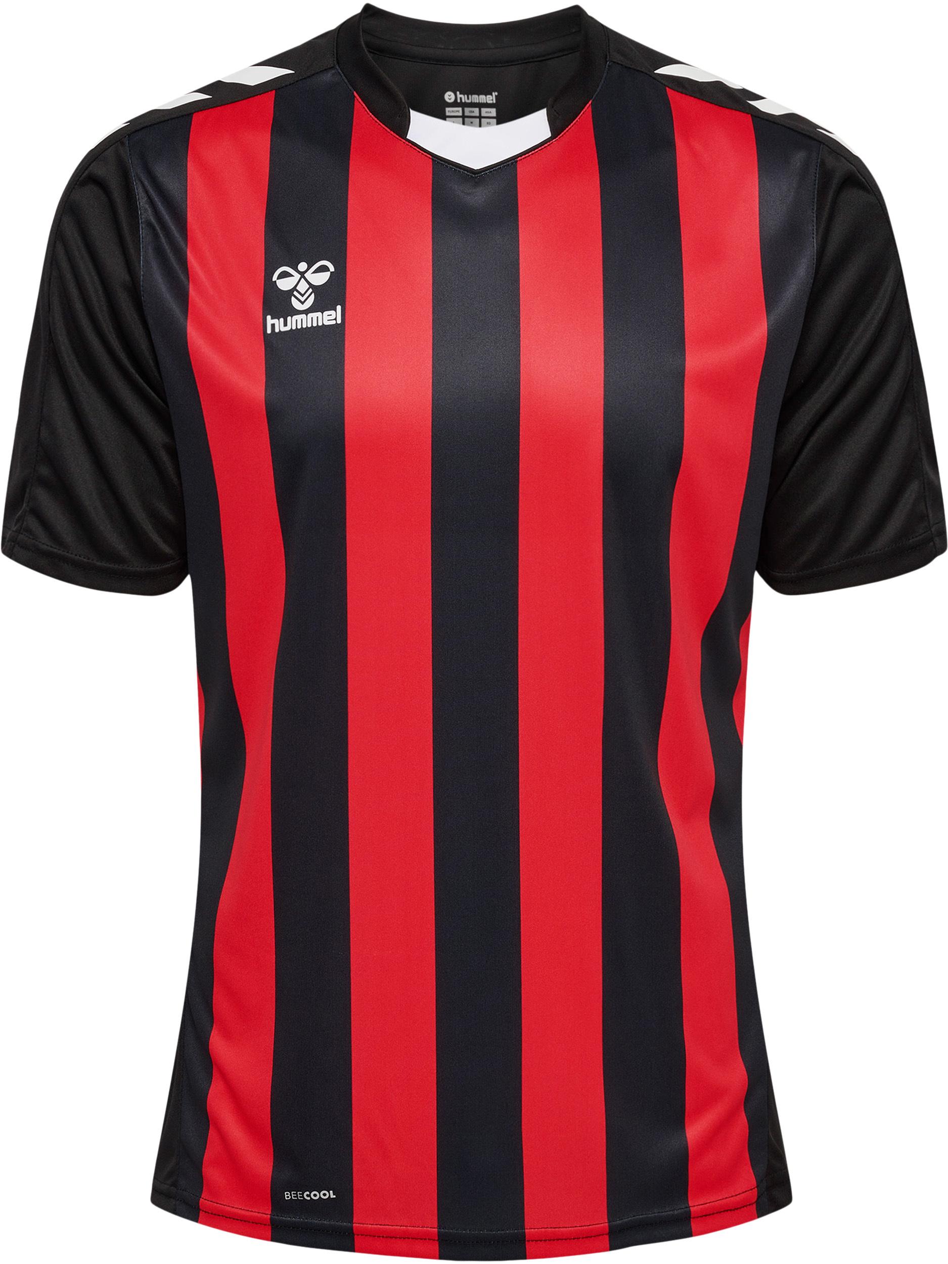 Das hmlCORE XK STRIPED JERSEY S/S bietet hervorragenden Komfort dank des Interlock-Gewebes, das viel Dehnbarkeit und Bewegungsflexibilität bietet. Das Trikot wurde außerdem mit der BEECOOL®-Technologie behandelt, die eine verbesserte Atmungsaktivität bietet und dich während des gesamten Trainings trocken und kühl hält. Neben dem aufgedruckten Streifendesign auf dem Rumpf weist dieses Trikot die kultigen Winkel an den Schultern, einen Nackeneinsatz mit Biesendetails und das hummel®-Logo für einen eleganten Kontrastlook auf.
