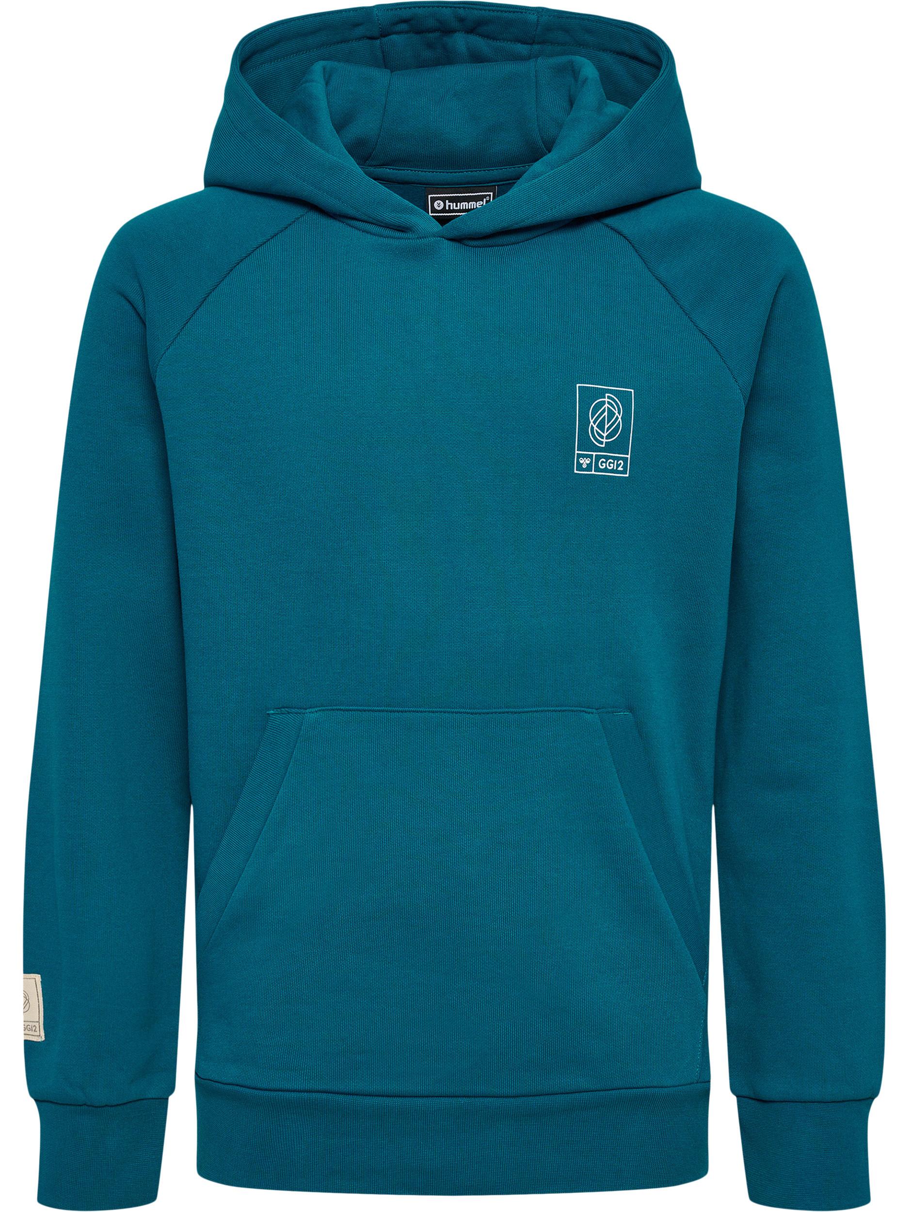 Der hmlGG12 SWEAT HOODIE KIDS aus Bio-Baumwollsweatstoff sorgt durch die angeraute Stoffinnenseite für optimale Komfort und Wärme. Dieser hummel® Kapuzenpullover bietet eine kontrastierende Zugschnur in der Kapuze für eine individuelle Passform. Auf der Vorderseite des Hoodies befindet sich eine klassische Beuteltasche.