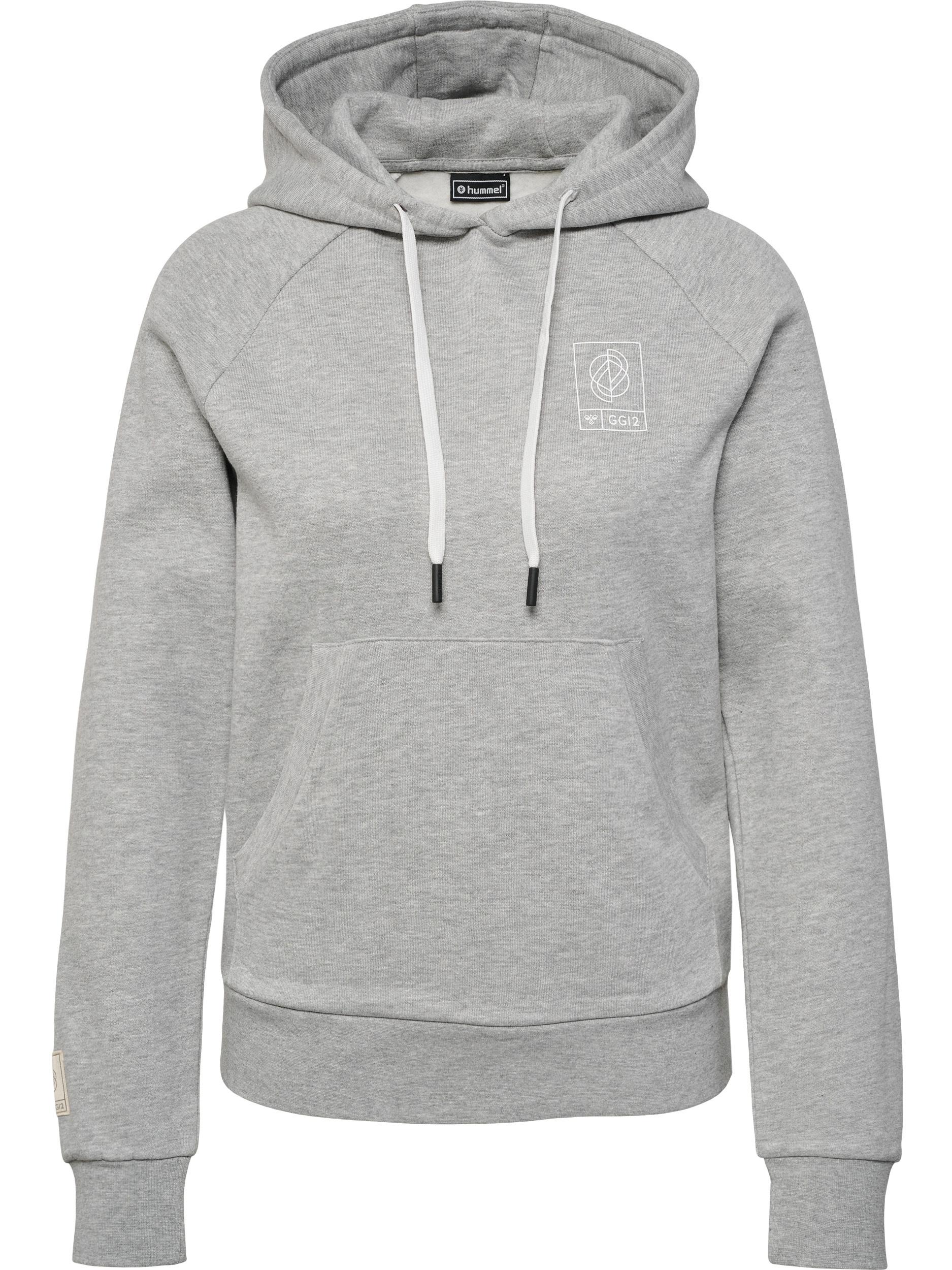 Der hmlGG12 SWEAT HOODIE WOMAN verfügt über eine angeraute Stoffinnenseite für mehr Komfort und Wärme. Dieser hummel® Kapuzenpullover aus Bio-Baumwollsweatstoff bietet eine kontrastierende Zugschnur in der Kapuze für eine individuelle Passform. Auf der Vorderseite des Hoodies befindet sich eine klassische Beuteltasche.