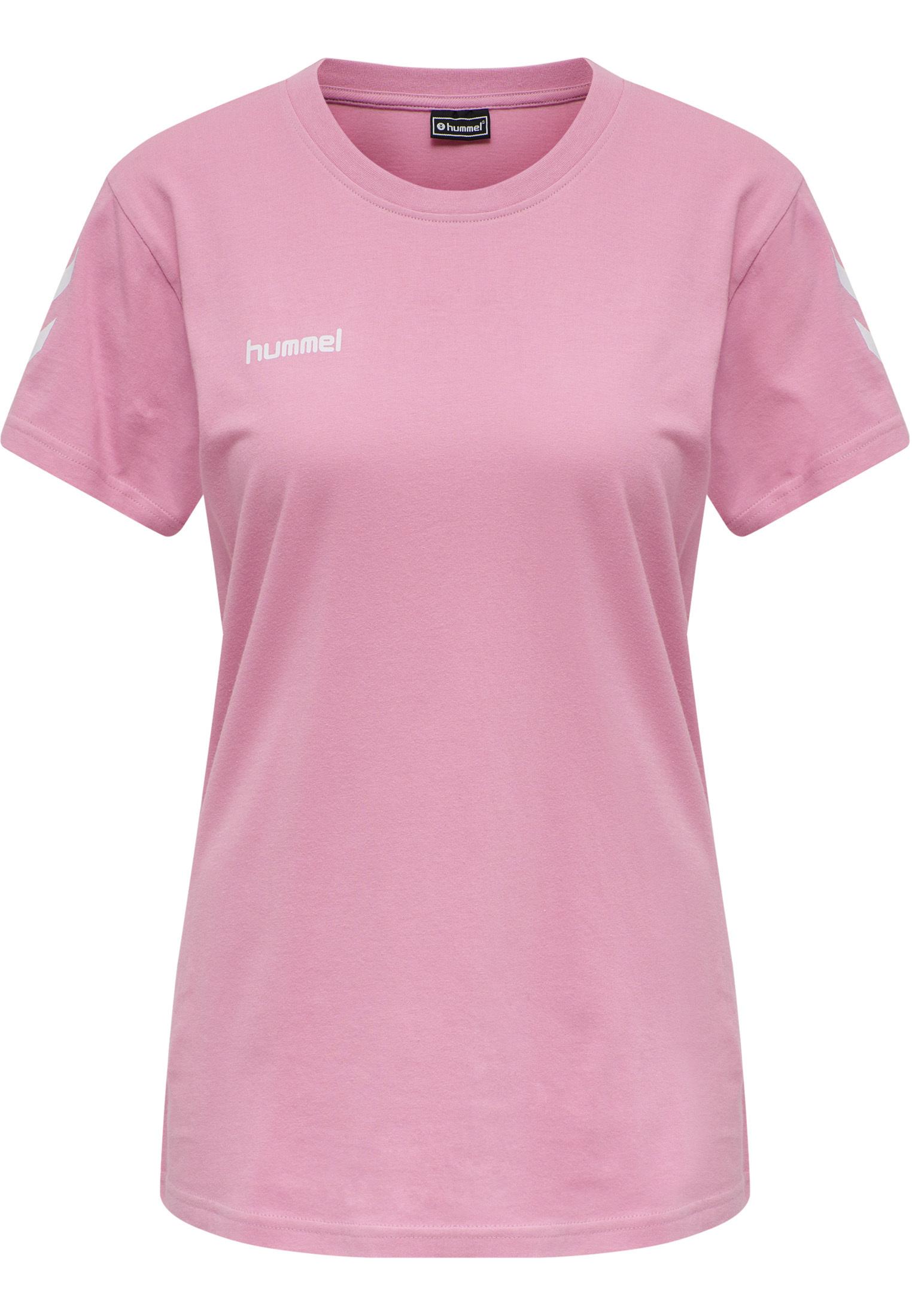 Das hummel® HMLGO COTTON T-SHIRT WOMAN S / S aus weicher, Baumwolle mit Ärmel-Chevrons und dezent gedrucktem Logo vereint die heilige Dreifaltigkeit der Fashion S - sportlich, stylisch und super bequem.