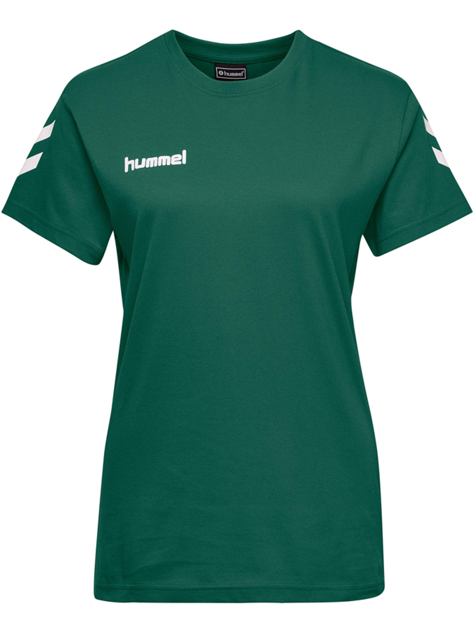 Das hummel® HMLGO COTTON T-SHIRT WOMAN S / S aus weicher, Baumwolle mit Ärmel-Chevrons und dezent gedrucktem Logo vereint die heilige Dreifaltigkeit der Fashion S - sportlich, stylisch und super bequem.