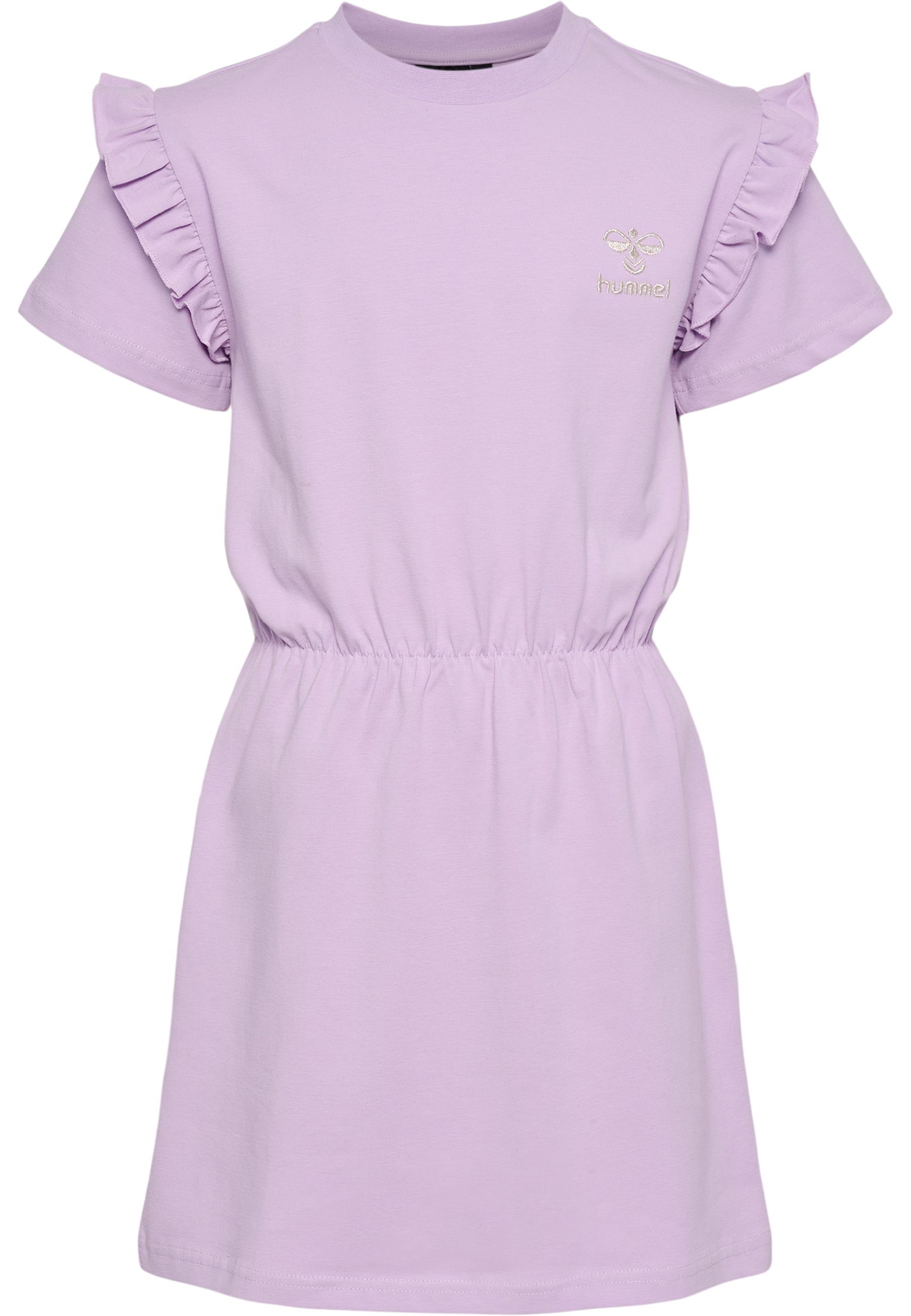 Kinder fühlen sich im hmlJUMPY DRESS S/S mit seinem bequemen Jerseystoff und dem elastischen Bund für eine flexible Passform angenehm kühl. Dieses hummel® Kleid hat das klassische Bumblebee® Logo auf der Brust sowie Rüschendetails an den kurzen Ärmeln, die den fröhlichen Sommerlook perfekt machen.