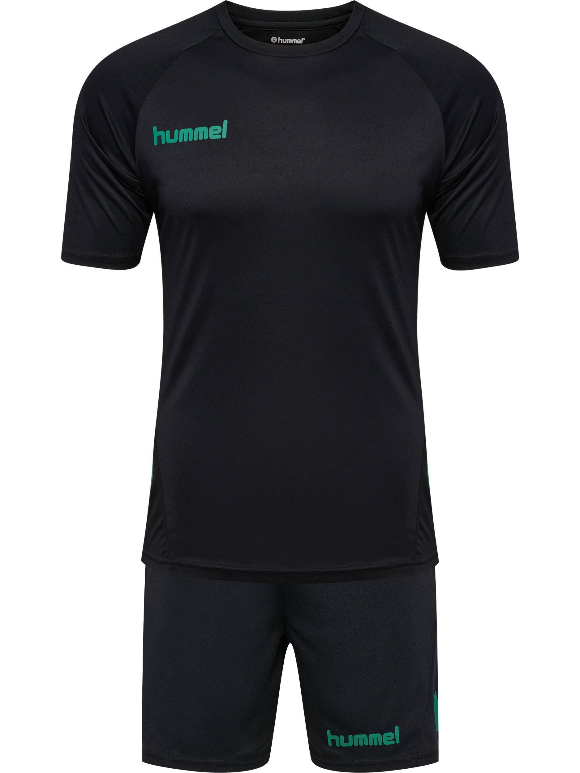 Das hmlPROMO SET kombiniert ein T-Shirt mit einer passenden Trainingsshorts und ist ideal für Fußball, Handball oder andere sportliche Aktivitäten. Das Oberteil dieses hummel® Sets hat kurze Raglanärmel für zusätzliche Bewegungsfreiheit. Der elastische Bund an der Shorts verfügt über eine Zugschnur, mit der die Passform fixiert werden kann.