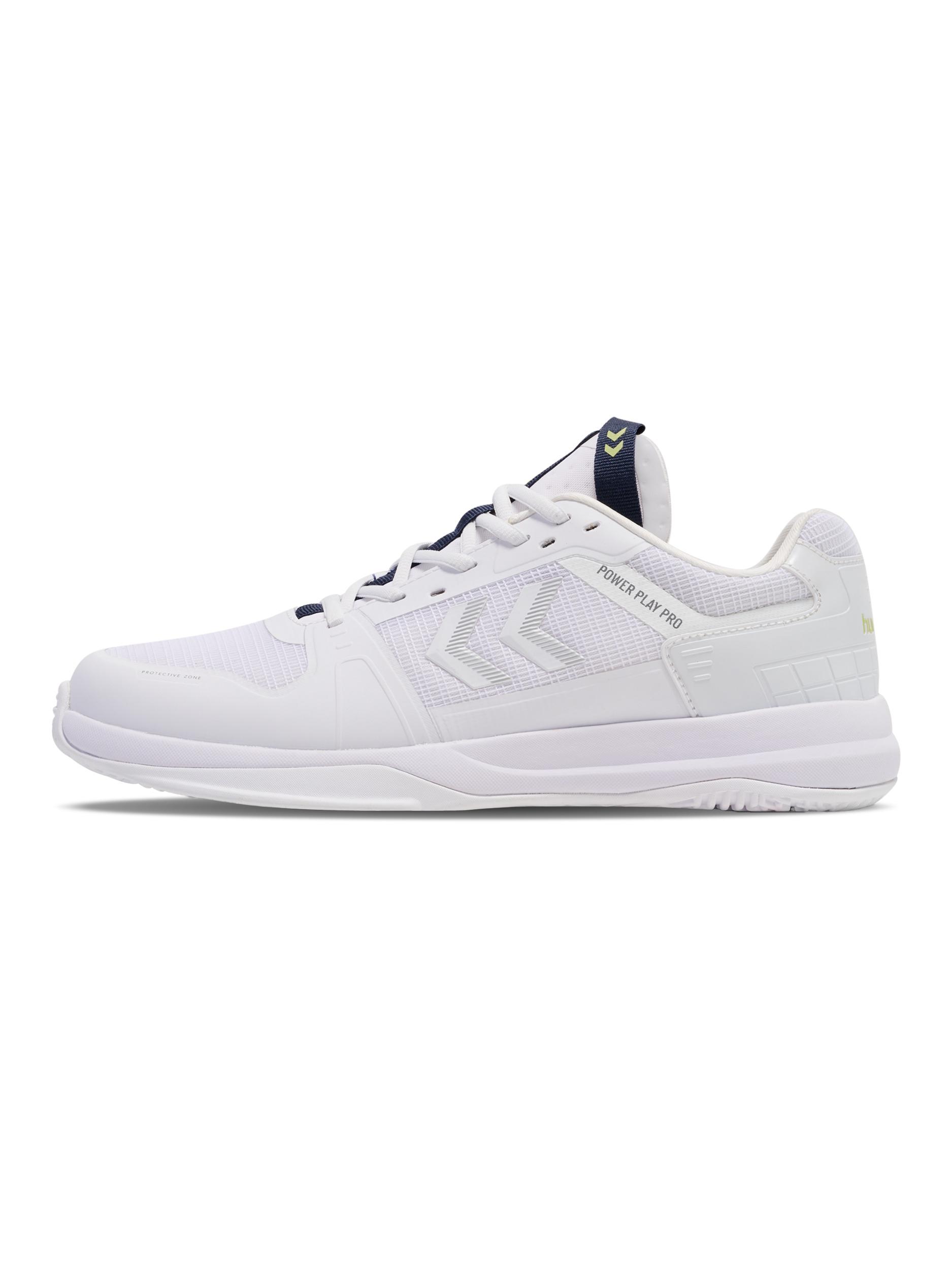 Der Hallenschuh POWER PLAY PRO hat ein Obermaterial aus technischem Mesh und TPU-Hotmelt-Verstärkungen. So sind optimale Atmungsaktivität und Strapazierfähigkeit garantiert. Er ist speziell darauf ausgelegt, zusätzliche Stabilität zu bieten. Durch einen verstärkten Fersenbereich, eine Gelenkstütze im Mittelfußbereich, eine Seitenwandunterstützung im Vorderfußbereich und einen Power Shield mit zusätzlichen Schnürsenkellöchern bleibt der Fuß in einer stabilen Position fixiert. Dank der gepolsterten Ortholite-Innensohle und der weichen Fersen- und Zungenpolsterung genießt du stets höchsten Tragekomfort. Dieser Handballschuh auf Profiniveau verschafft dir einen Vorteil gegenüber deinen Gegnern. Er verfügt über eine reaktionsfreudige Zwischensohle mit REACH LX Technologie, die eine hohe Energierückgabe bietet, sowie eine nicht abfärbende Gummiaußensohle mit multidirektionalem Profil und eine interne Fersenkappe.