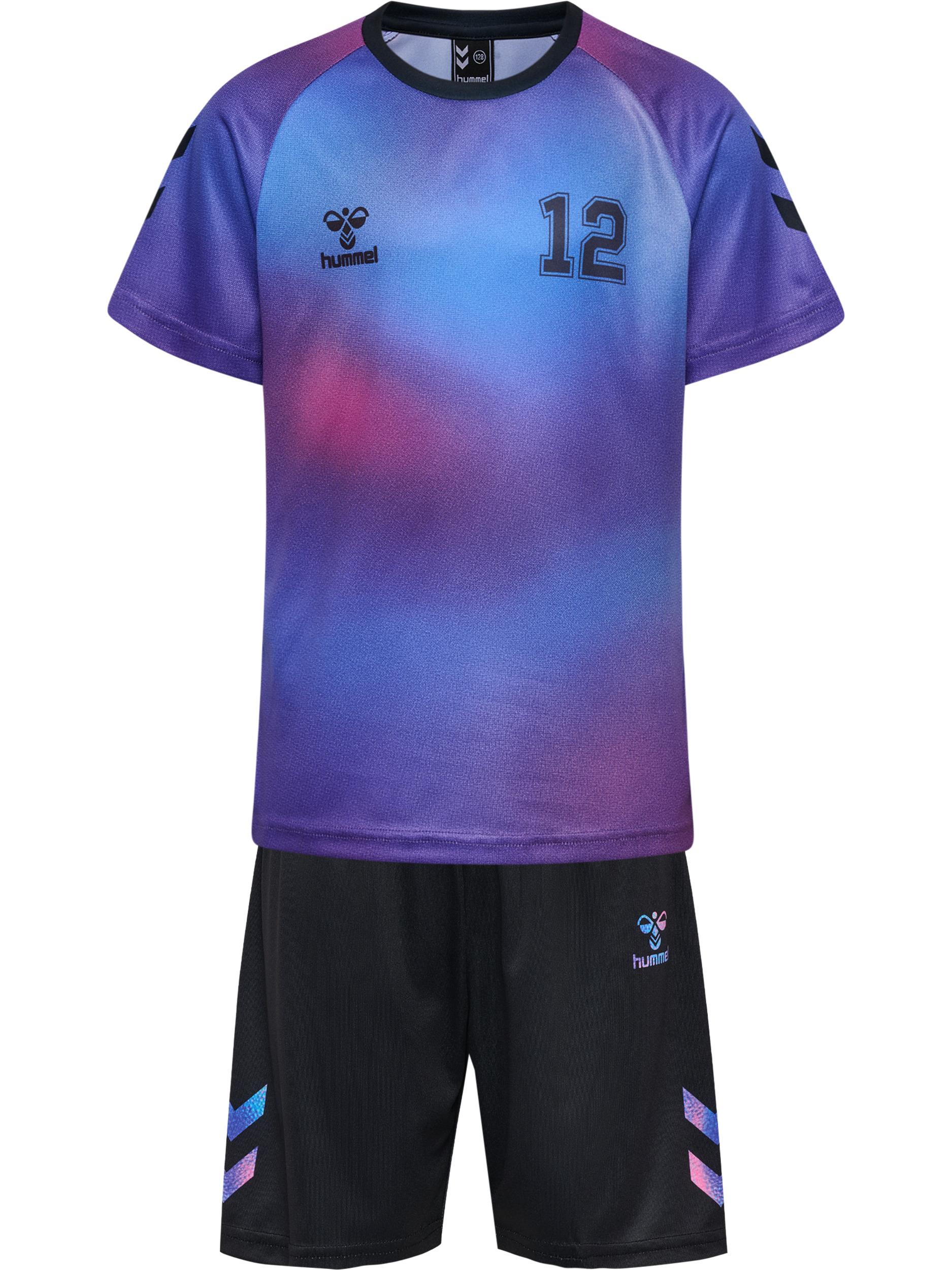 Das hmlSHIMMER SET ist ein klassisches Sportset für Kinder, gefertigt aus einem glatten und weichen Strick-Interlock-Stoff. Es besteht aus Shorts und einem T-Shirt, und schimmernde hummel-Details runden den Look ab.