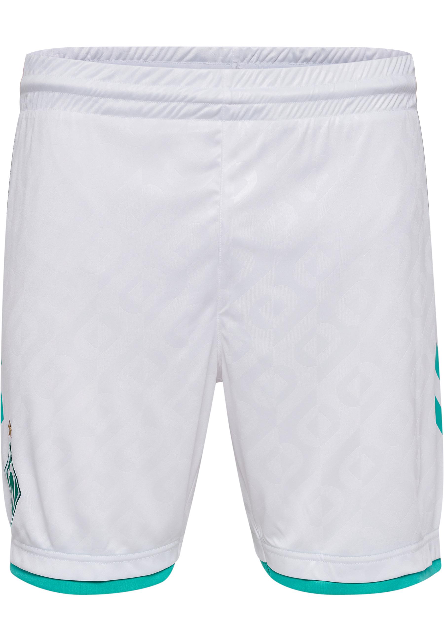 Die Auswärtsshorts von Werner Bremen für die Saison 23/24 bieten höchsten Tragekomfort dank ihres Interlock-Gewebes. Sowohl auf der Vorder- als auch auf der Rückseite sind sie mit einem dezenten geprägten Muster versehen. Die 3D-gedruckten Logos des Vereins und des Clubs verleihen ihnen eine moderne Note, während die aufgedruckten Chevrons einen dynamischen Look ergänzen. Mit ihrem klassischen Schnürverschluss bieten sie eine individuelle Passform und sind sowohl auf als auch neben dem Spielfeld ein echter Hingucker.