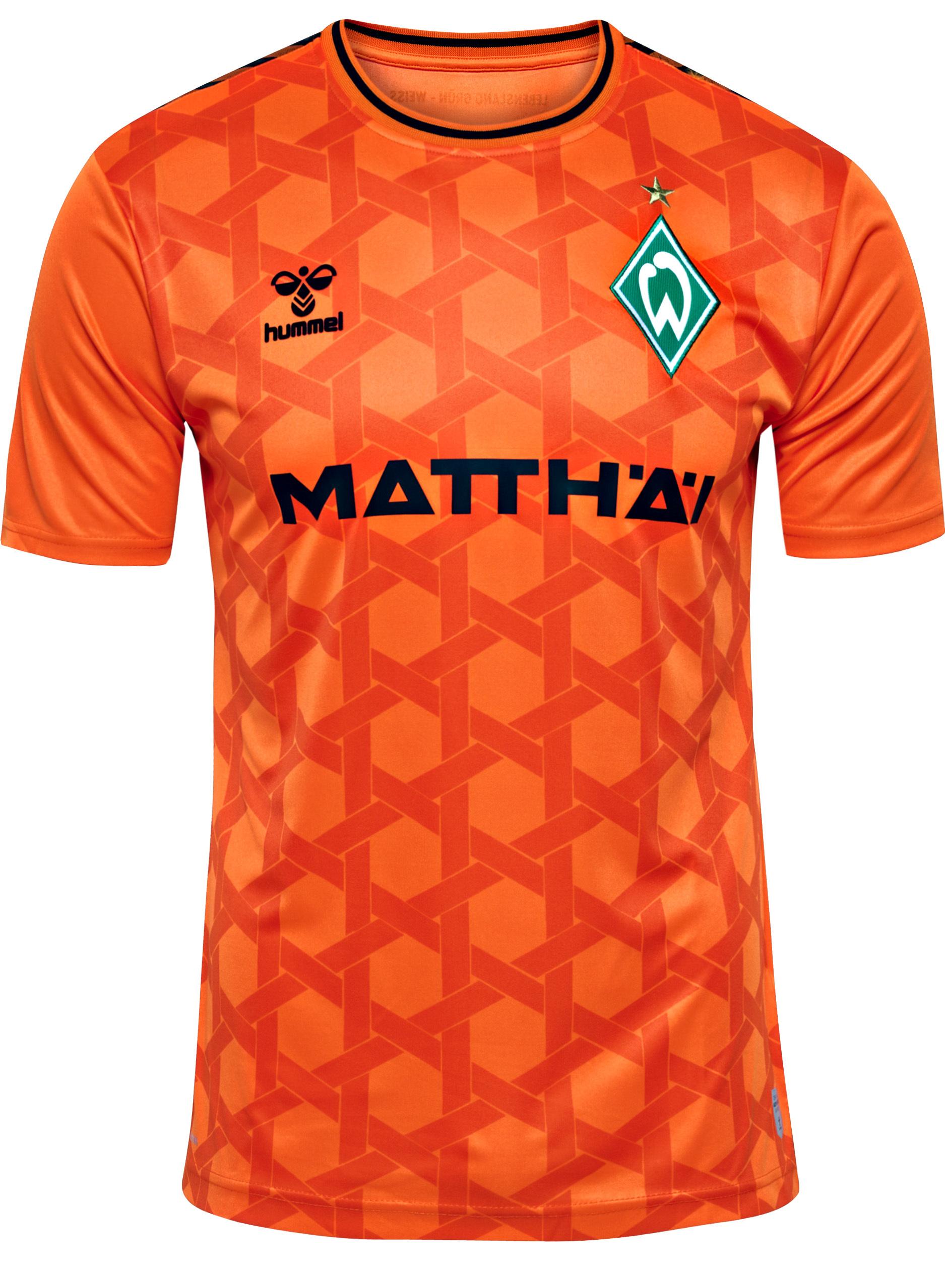 Werder Bremen 23/24 Torwarttrikot mit kurzen Ärmeln. Grafischer Allover-Print auf der Vorderseite und hummel-Logo sowie Vereinslogo auf der Brust. hummel-Winkel auf den Schultern vervollständigen den Look.