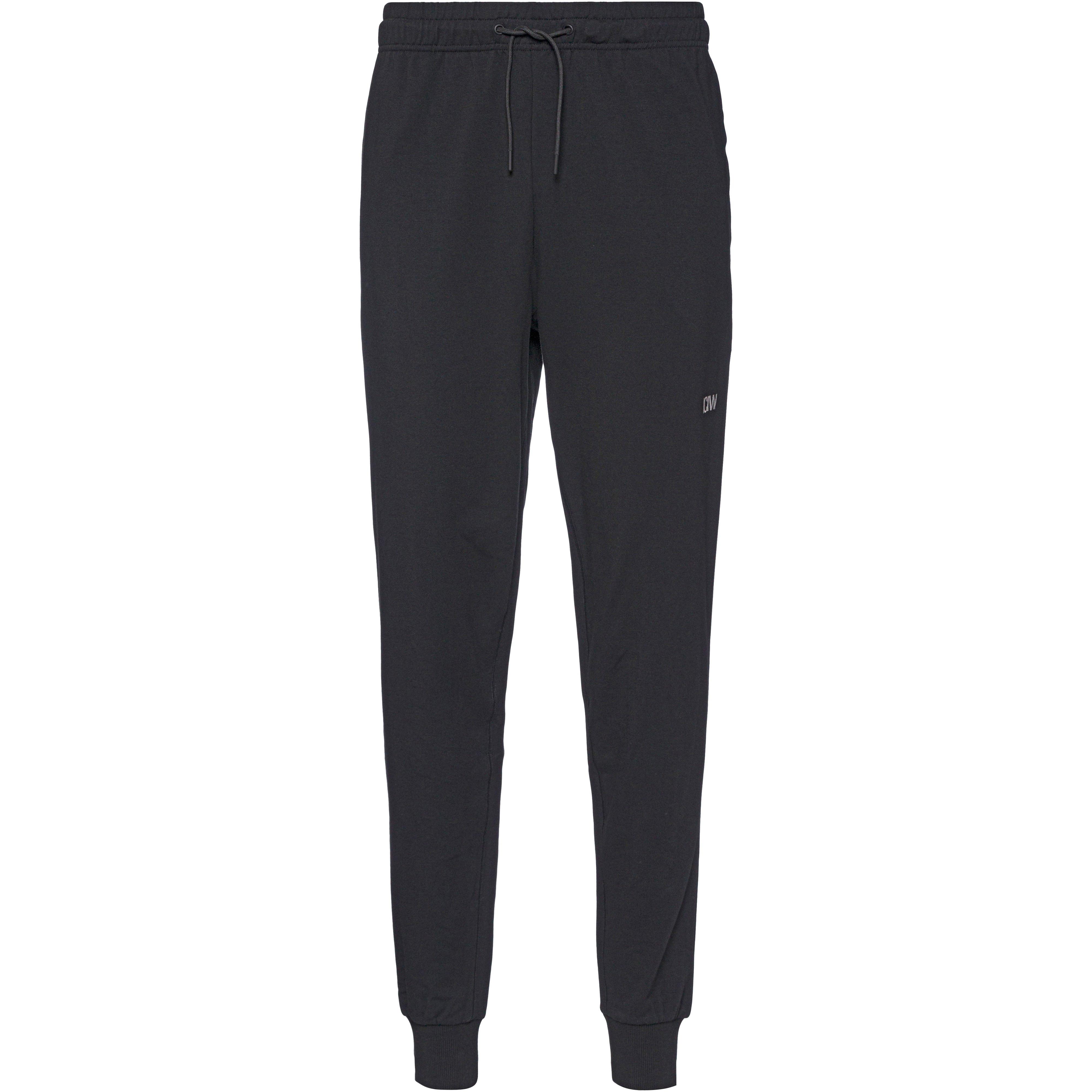 Funktionshose mit elastischem Bund und Kordelzug; 2 Seitentaschen mit Reißverschluss; 2 Fake-Taschen auf der Rückseite; Beinsaum mit Rippbündchen; Material 68% Baumwolle, 25% Polyester, 7% Elastan.