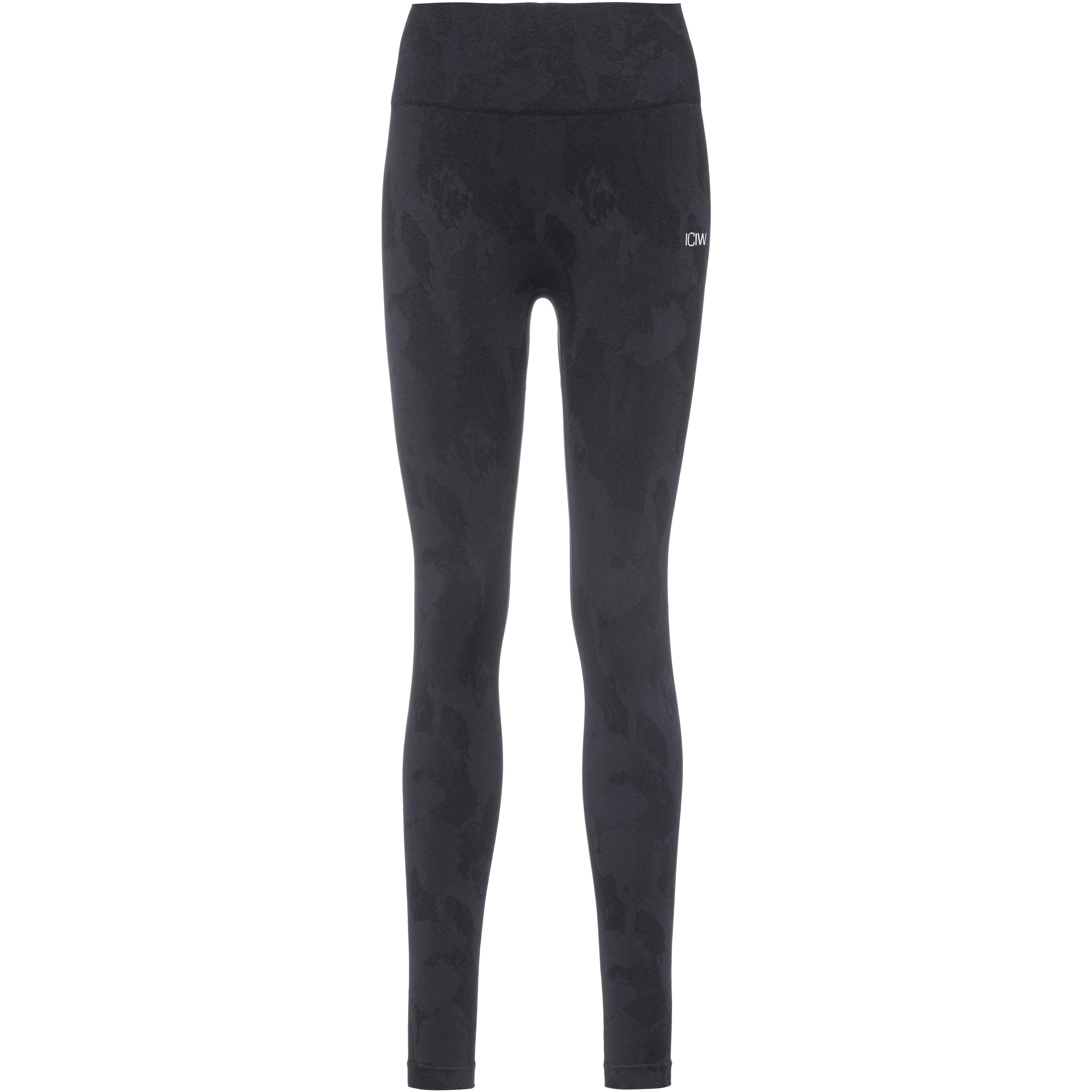 Tights mit dezentem Camouflage-Muster; nahtloses Design mit 4-Wege-Stretch für optimale Bewegungsfreiheit; hoher, gerippter Elastikbund; reflektierendes Logodetail; Material 54% Polyamid (recycelt), 34% Polyester (recycelt), 12% Elastan.