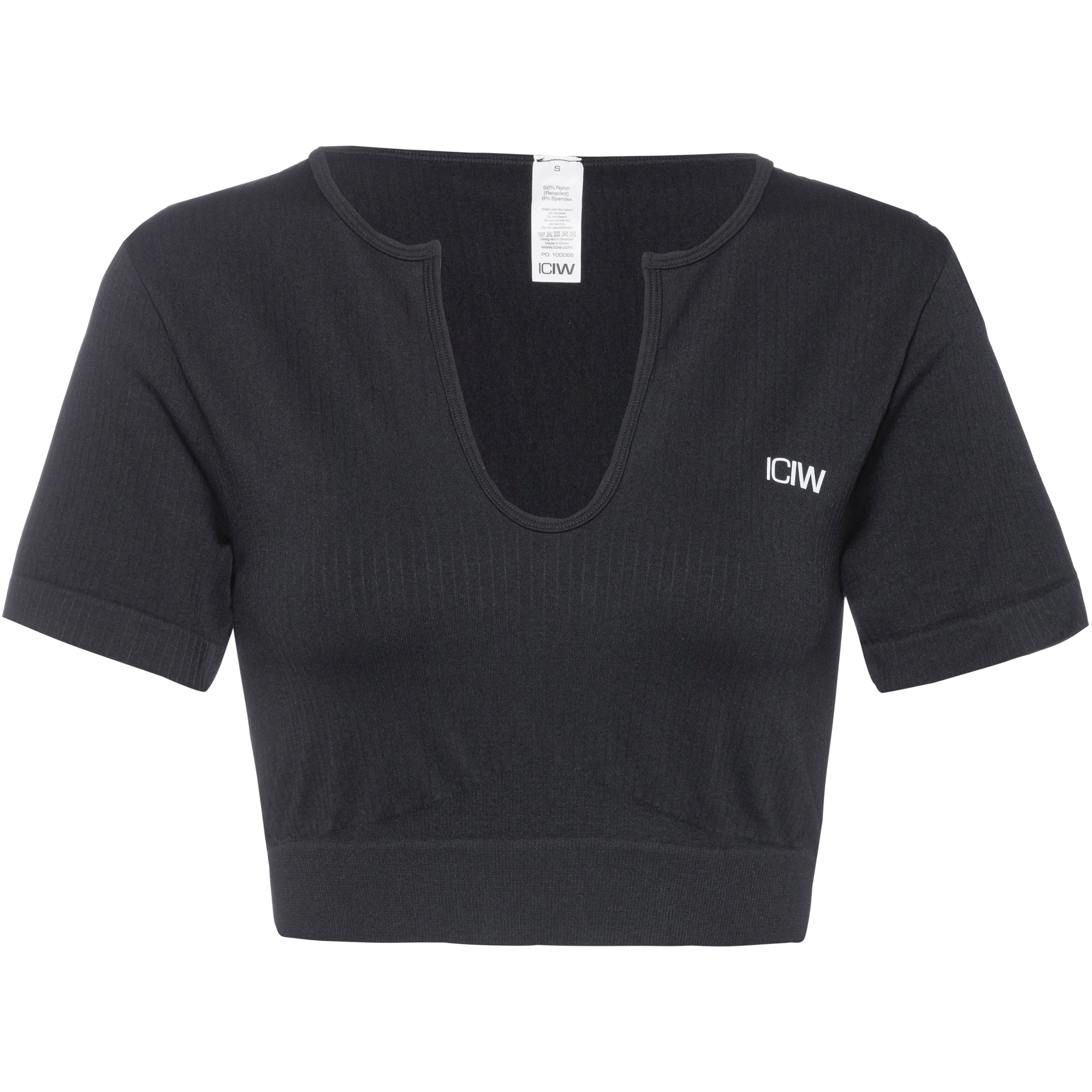 Croptop in nahtloser Verarbeitung mit Ripp-Struktur; weiches 4-Wege-Stretch-Material; feuchtigkeitsregulierende Sweattech™-Technologie; raffinierter V-Ausschnitt; Logoprint; Material 92% Polyamid (recycelt), 8% Elastan