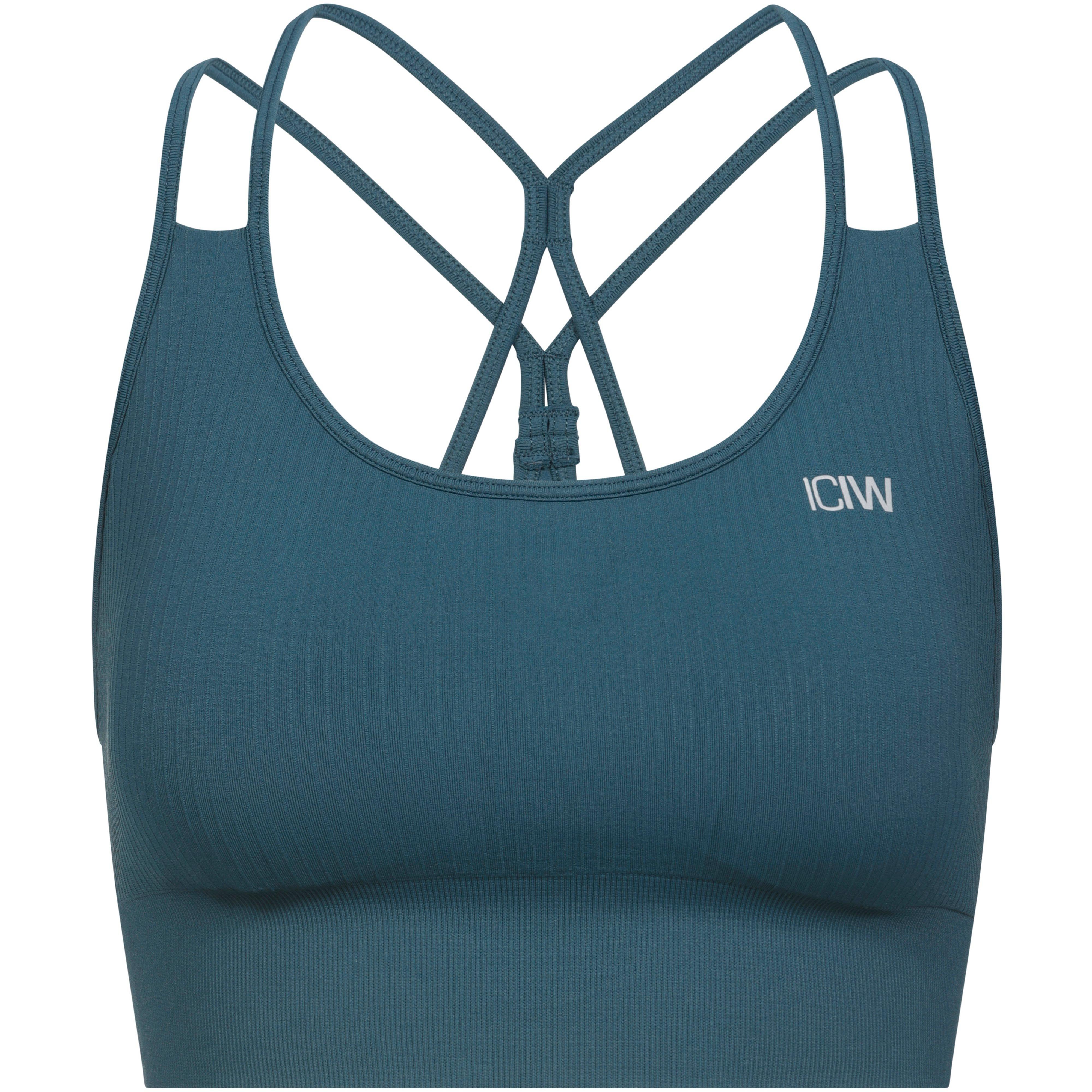 Nahtloser Sport-BH mit herausnehmbaren Softpads; strukturiertes Stretchgewebe; dekoratives Doppelträger-System, ermöglicht optimale Bewegungsfreiheit bei allen Aktivitäten; Logodetail; Material 92% Polyamid (recycelt), 8% Elastan.