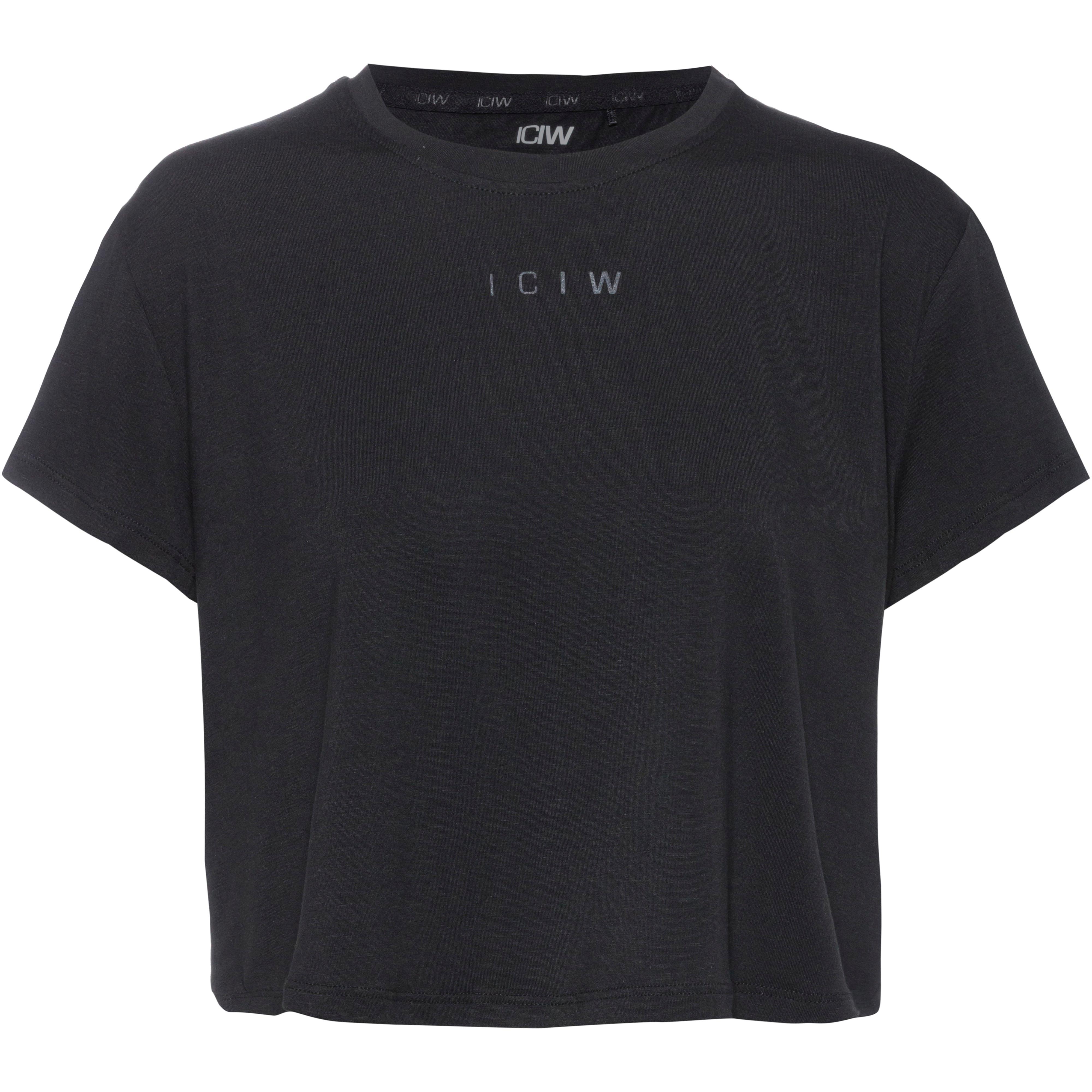 Atmungsaktives Croptop aus weichem 4-Wege-Stretch-Material mit Rundhalsausschnitt und kleinem Logoprint; kastenförmiger Schnitt mit kurzen Ärmeln; Material 95% Lyocell (Tencel™), 5 % Elastan.
