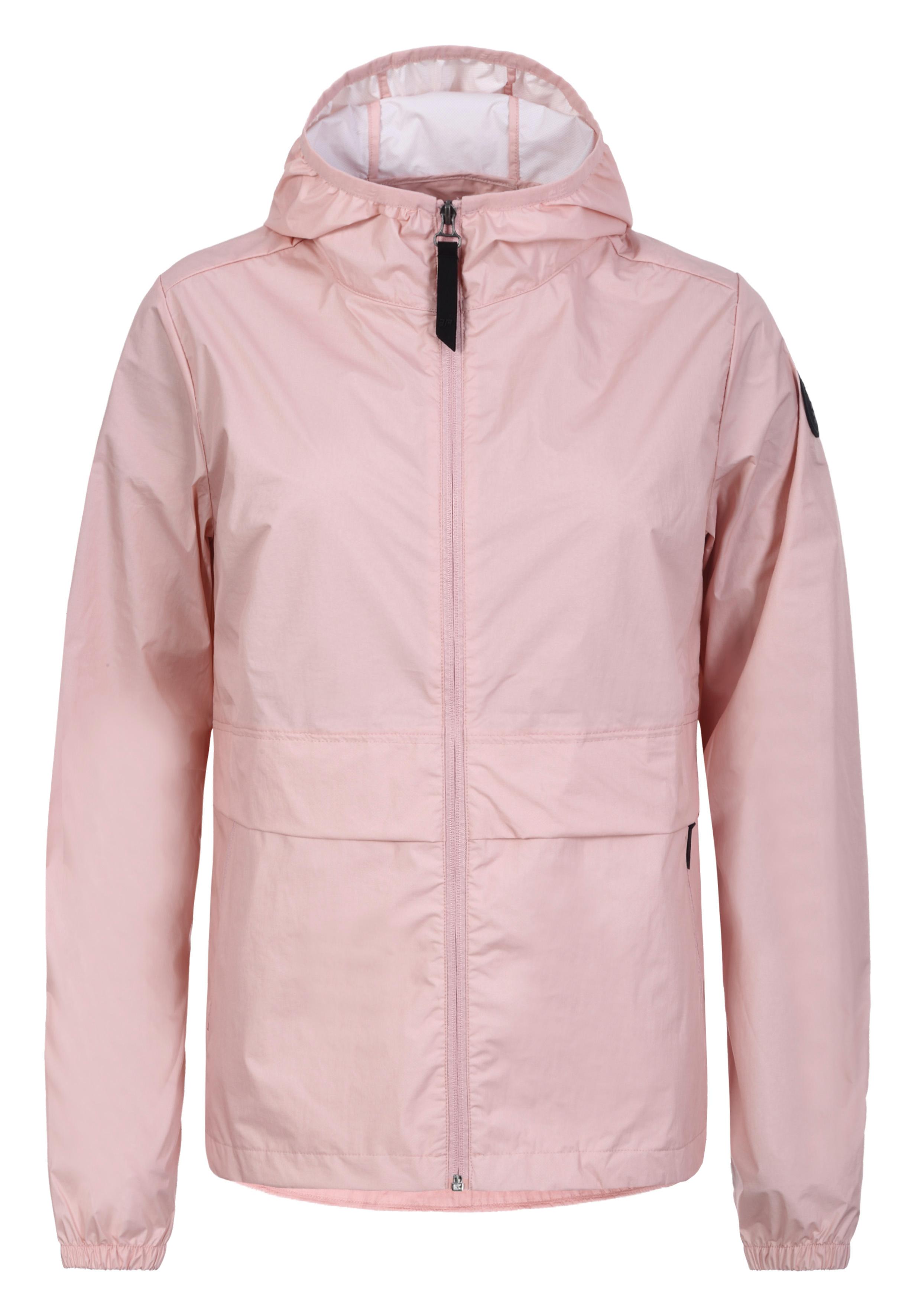 2,5-lagige Funktionsjacke mit wind- und wasserabweisender Eigenschaft; feste Kapuze; Frontreißverschluss; 2 Reißverschlusstaschen; elastische Ärmelbündchen; Kordelzug im Saum; Label-Details; Material 100% Polyamid.