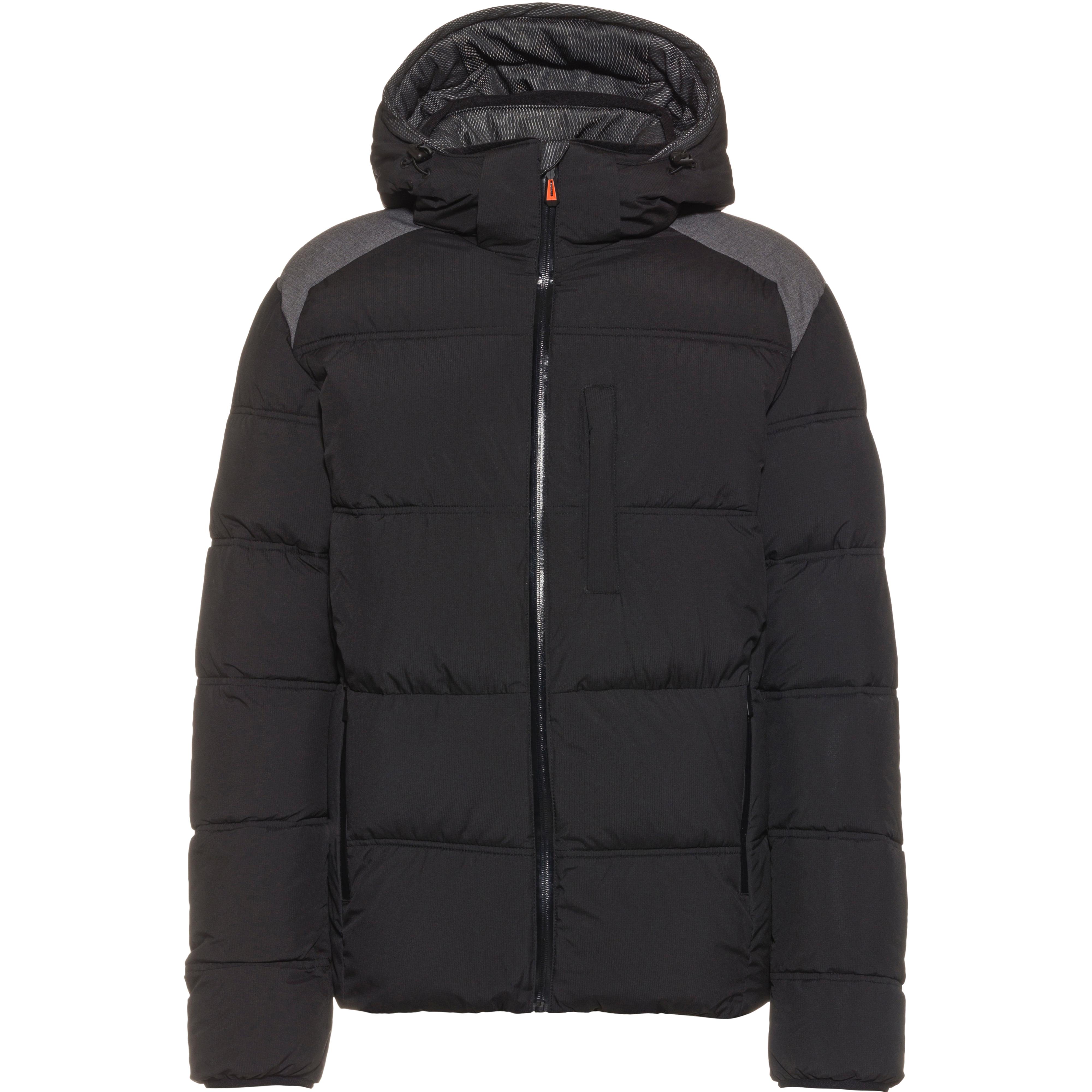 Warm wattierte Steppjacke aus wasserdichten und robusten Dermizax® EV Gewebe für hohe Atmungsaktivität und verbesserten Feuchtigkeitstransport; winddichte, wasserabweisende sowie feuchtigkeitsableitende A.W.S. Extreme-Technologie; Wassersäule 10.000 mm; abnehmbare Kapuze; Stehkragen mit Kinnschutz; wetterfester, hinterlegter Frontreißverschluss; vorgeformte Ärmel; 1 Brust- und 2 warm gefütterte Seitentaschen mit Reißverschlüssen und Zipgaragen; 1 Innentasche mit Reißverschluss; Stopper im Saum; Material I 100% Polyester, Material II 63% Polyester, 33% Viskose, 4% Elastan.