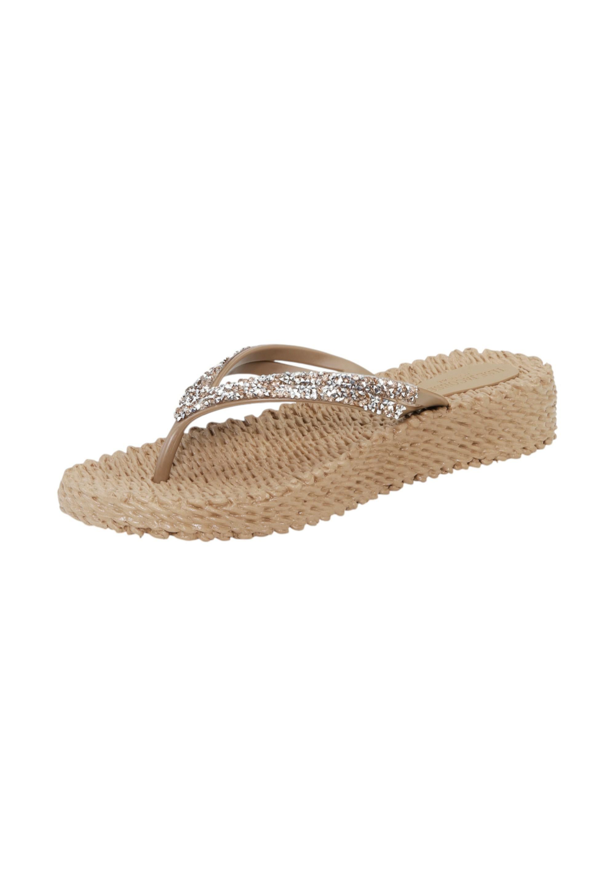 Cheerful15 ist ein Plateau-Zehentrenner mit Glitzersteinen. Aus leichtem Luftgummi und mit geflochtener Sohle ist er perfekt für jeden Anlass. Fällt klein aus, bitte eine Größe größer bestellen.