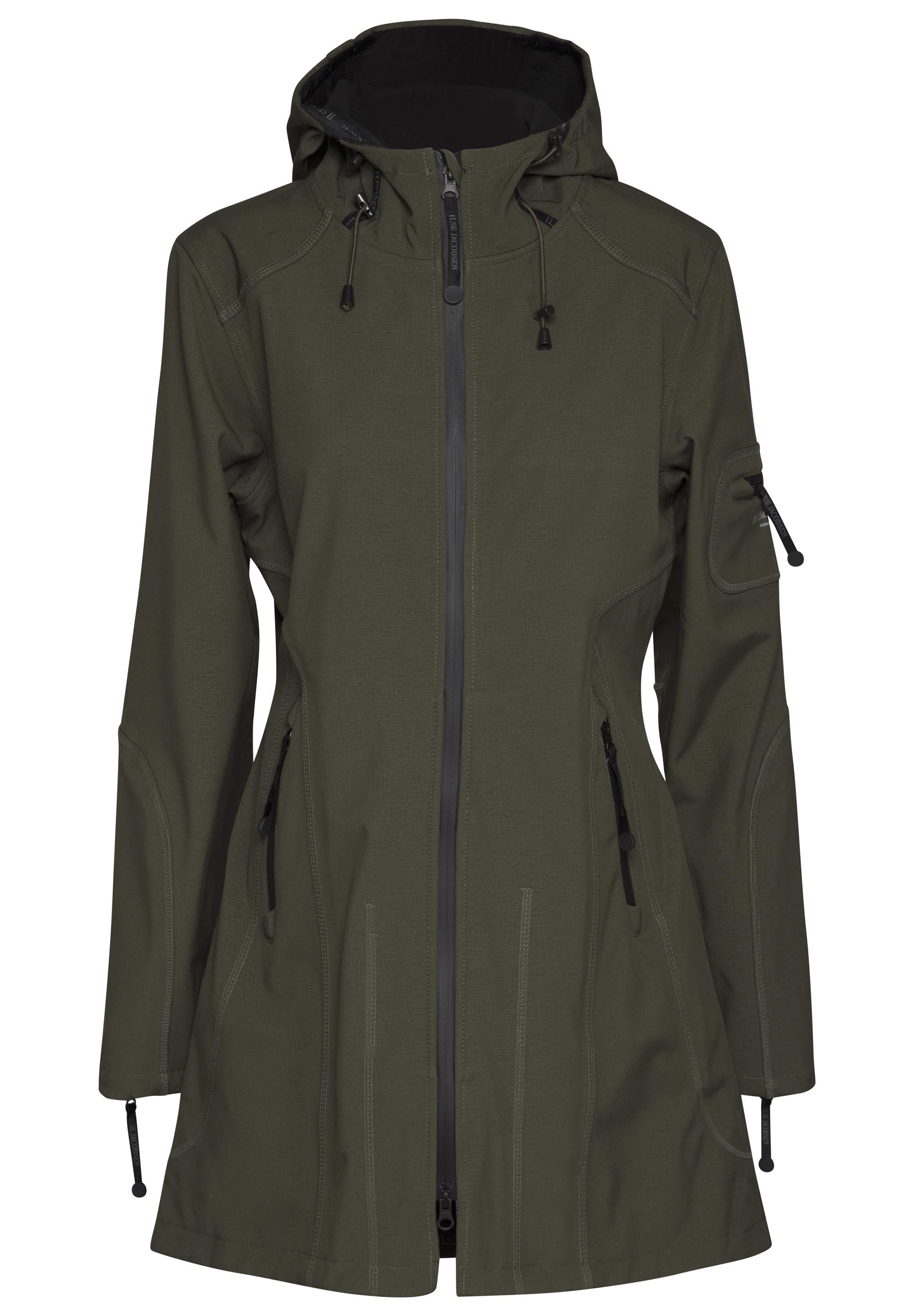 Dies funktionelle Regenjacke Rain07 aus atmungsaktivem und dehnbarem Softshell-Material hat eine bequeme und feminine Form mit einer leicht taillierten Taille und einem Gehschlitz mit Knöpfen für mehr Bewegungsfreiheit. Alle Nähte sind versiegelt und die Länge liegt knapp unter dem Knie. Die Jacke hat einen 2-Wege-Reißverschluss. Die Stoffoberfläche ist mit einer schmutz- und wasserabweisenden Ecorepel-Beschichtung behandelt, die einen unsichtbaren Schutzschild bildet. Die Regensoftshelljacke ist wetterfest, winddicht und bequem zum Tragen! Fällt klein aus, bitte eine Größe größer bestellen.